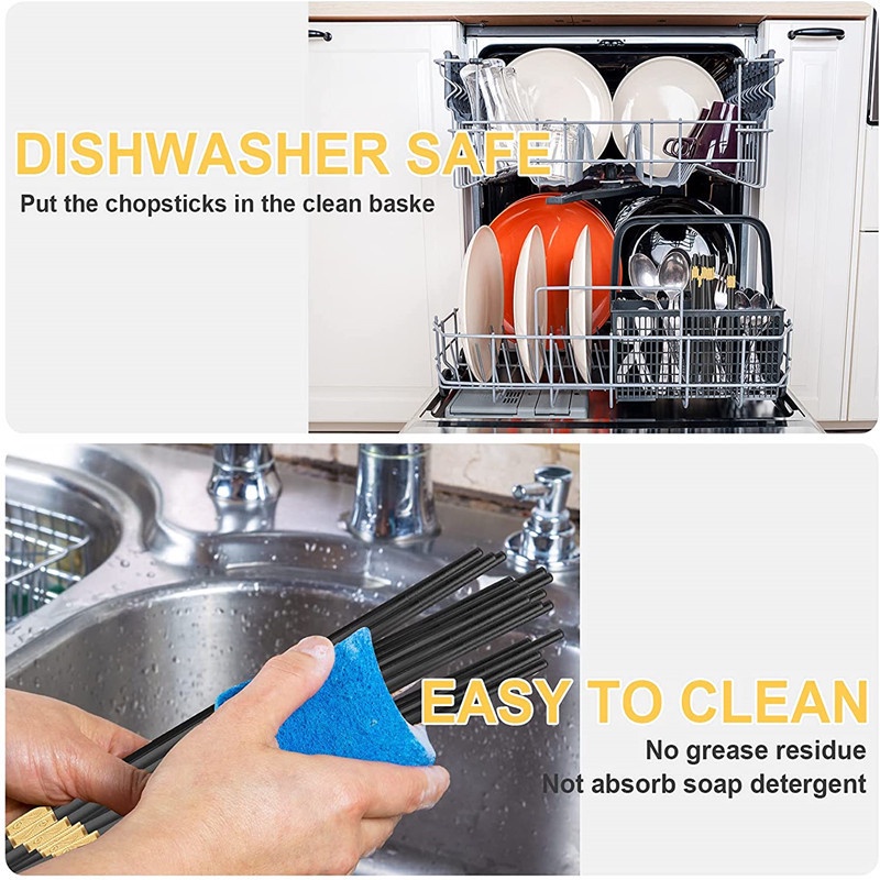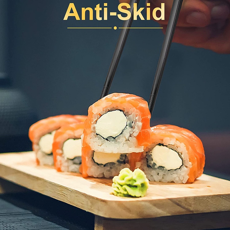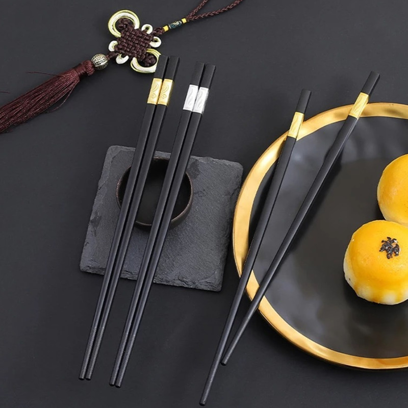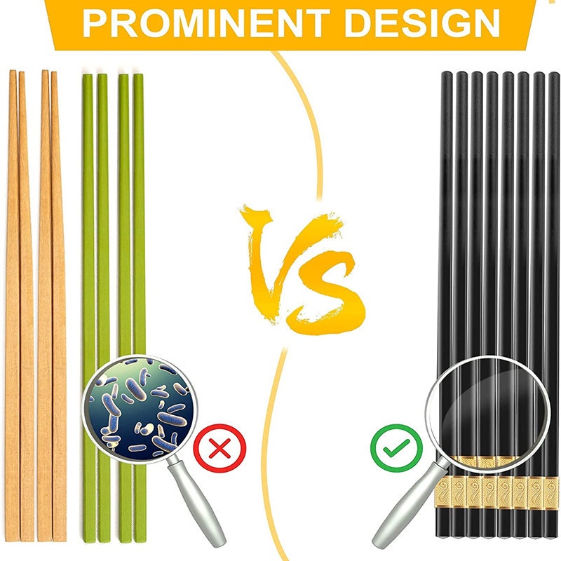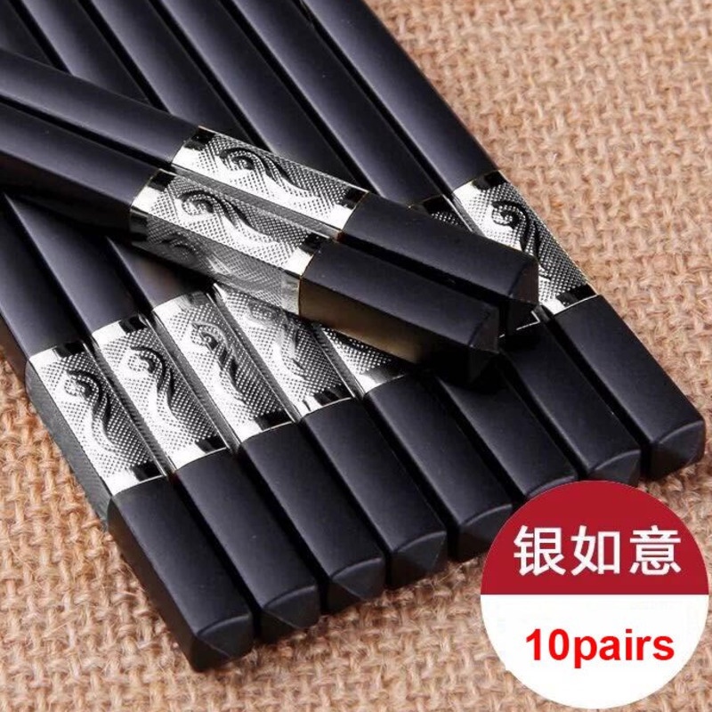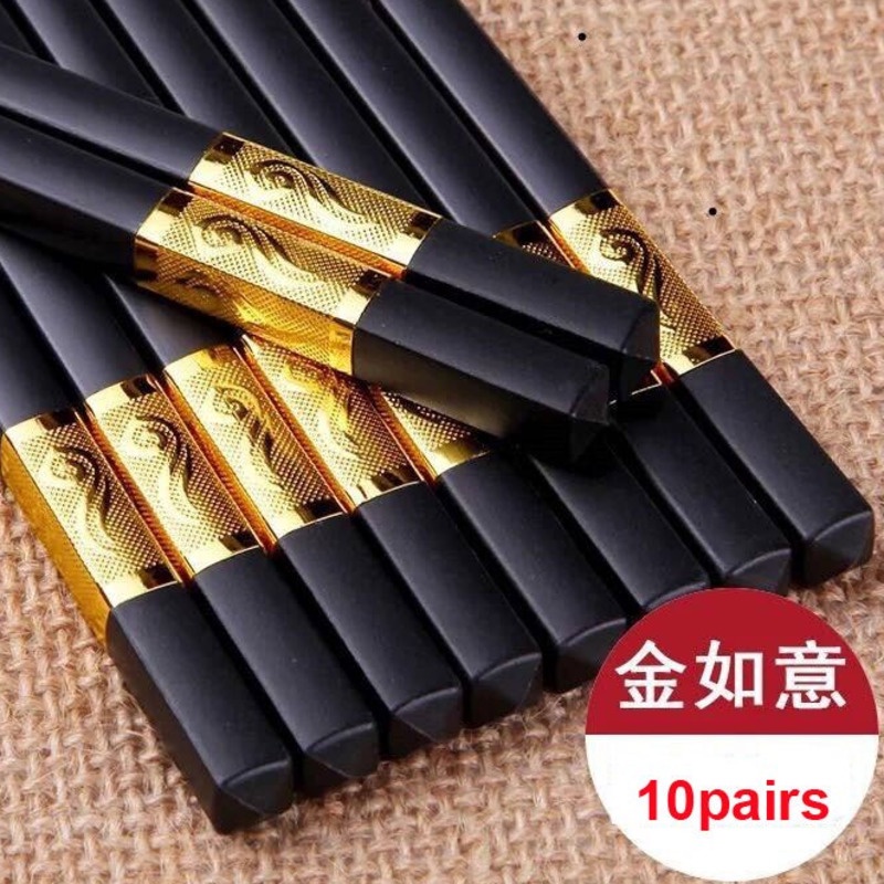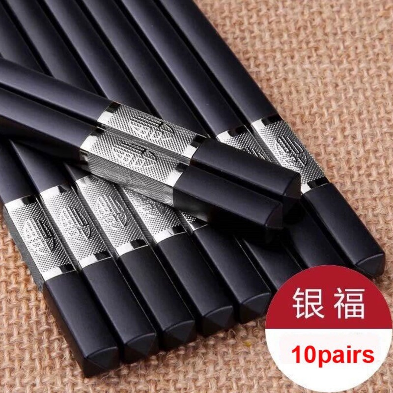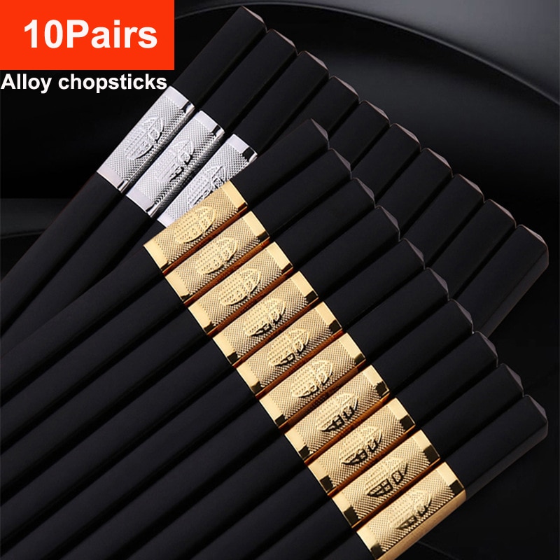 (SG Seller) 10 Pairs Chopsticks Set Non-slip Heat-resistant Table Chopsticks Reusable Food Stick Alloy Clip Tableware