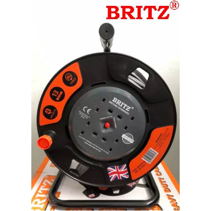 (SG Seller) BRITZ Cable Reel Heavy Duty Extention 4 Way 30M| Portable Cable Extension Cassette Reel