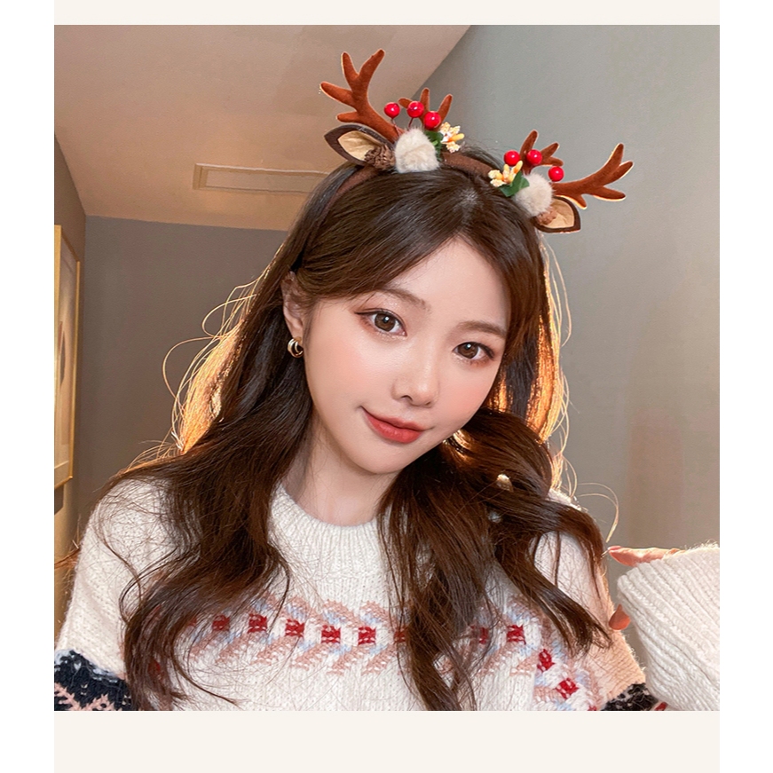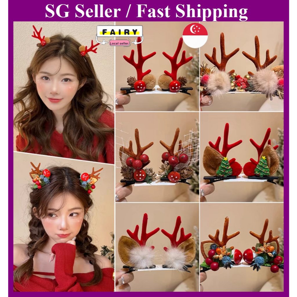 (SG Seller) Christmas Headband Reindeer Antlers Hair Band Hair Clip Hair Rope For Kids And Girls Christmas Head Wear