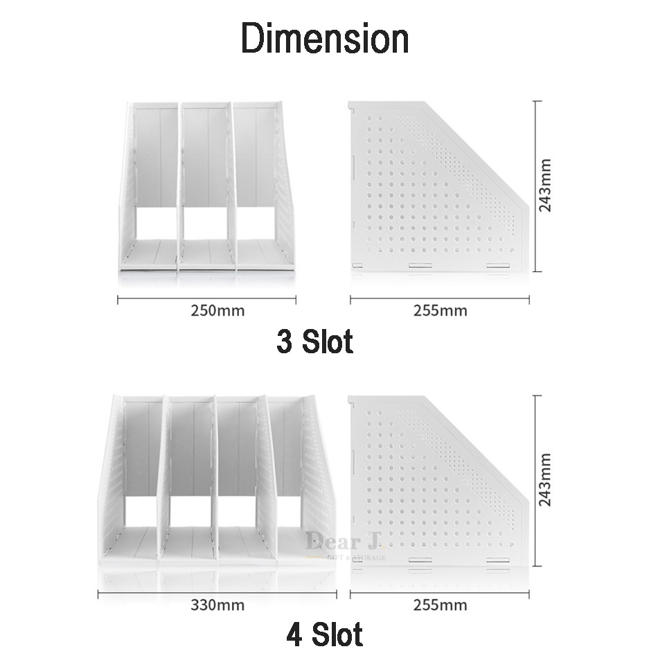 (SG Seller) Collapsible Book Stand File Shelf 3 Slot/ 4 Slot bookend [Dear J]