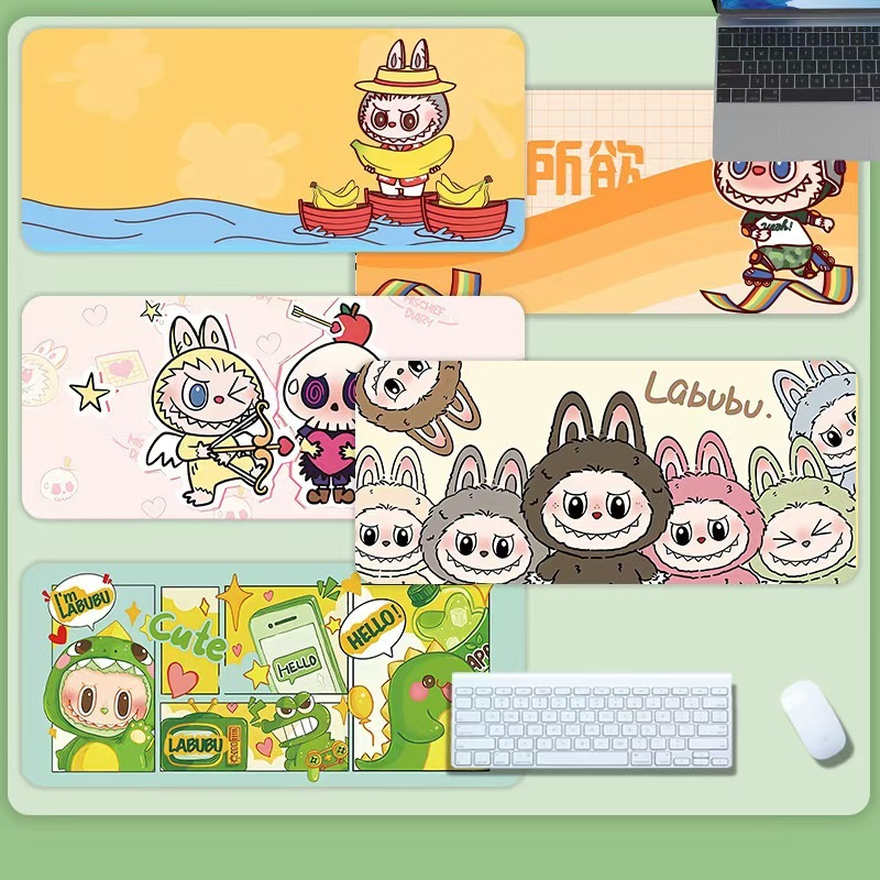 (SG Seller) Cute Cartoon Labubu Mouse Pad Super Large Computer Keyboard Pad Girl Office Non-slip Laptop Rubber Mat