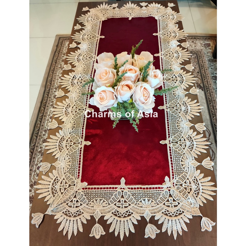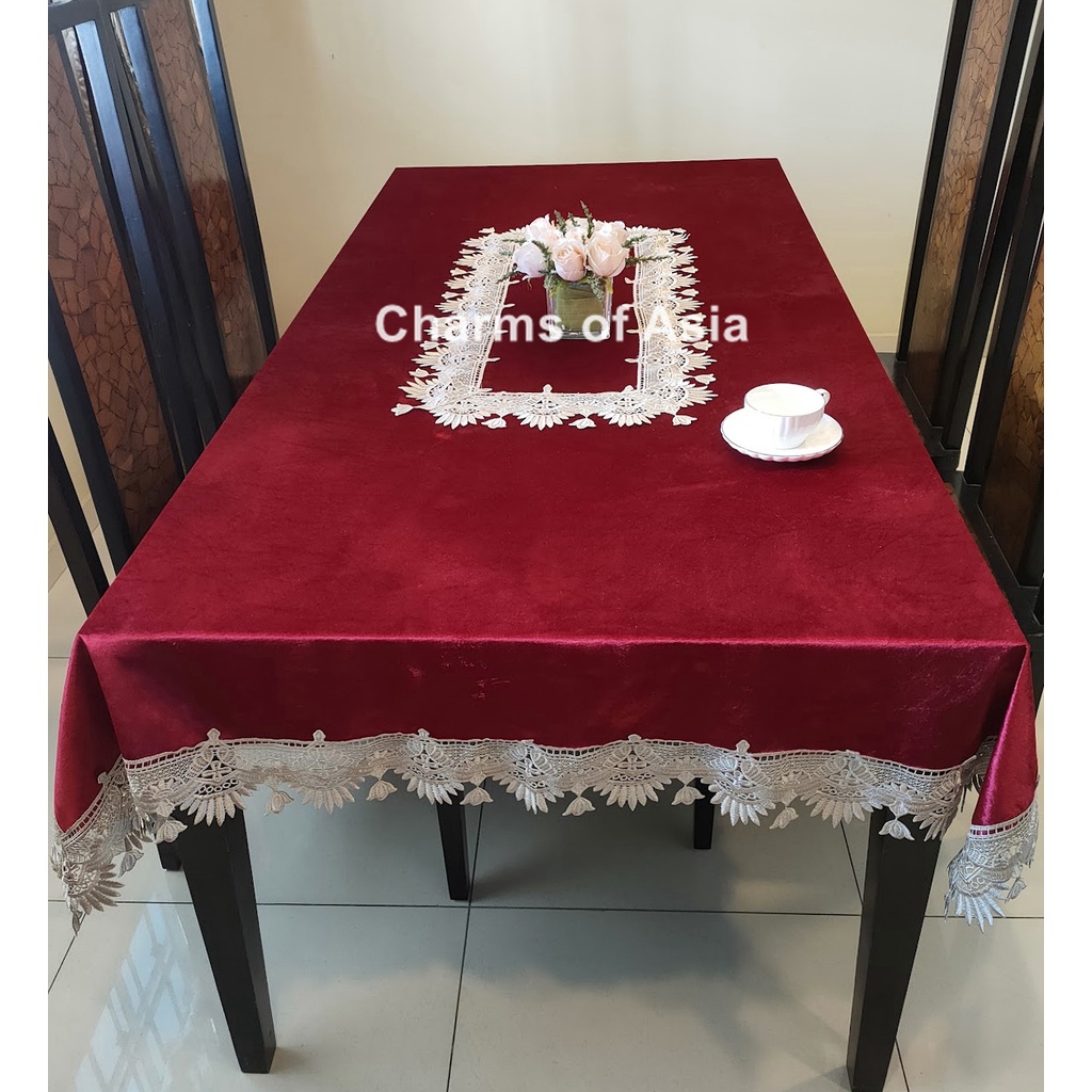 (SG seller ready stock)Velvet table runner table cloth placemat classy and elegant(Maroon, Beige, Teal, Mocha)