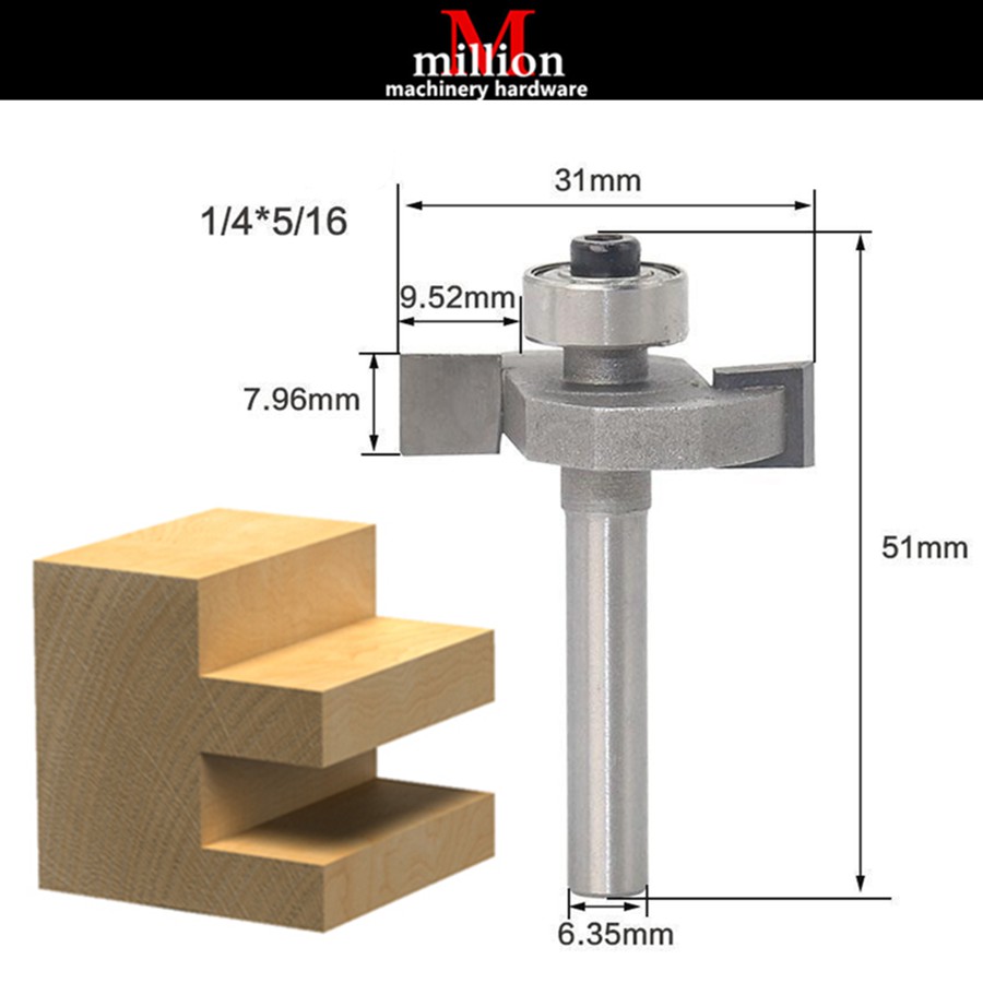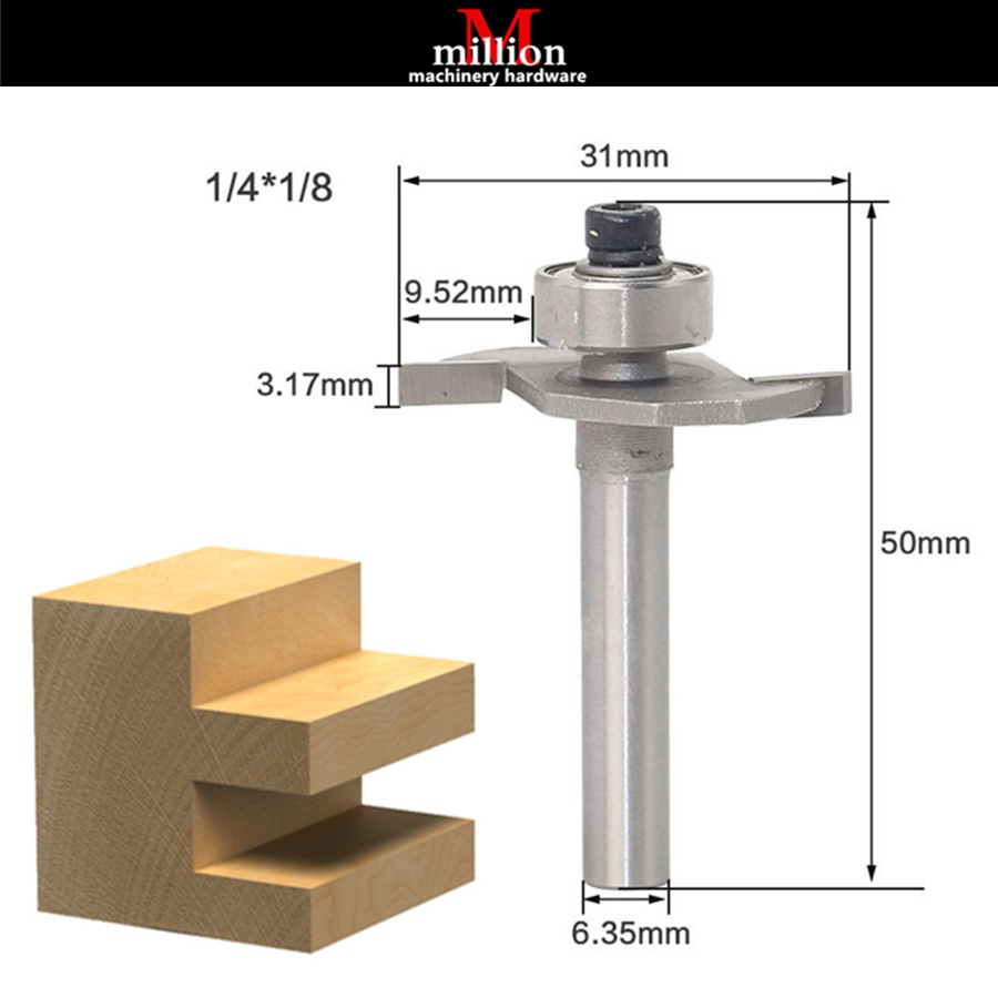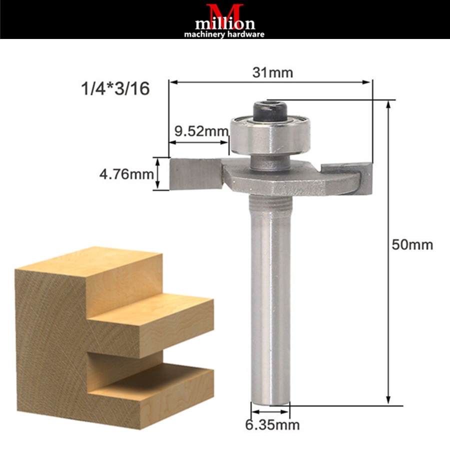 (T TYPE) 1/4" 6.35mm T Slot Shank Milling Cutter Wood Carving Groove Joint Assembly Router Bit Set Wood Cutter
