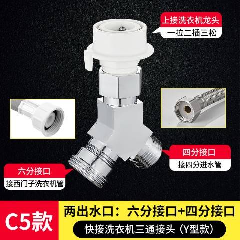 * Faucet Tap Diverter * Washing Machine Water Inlet Pipe One Point Two Quick Connector Out Dual Use Three-Way Split V