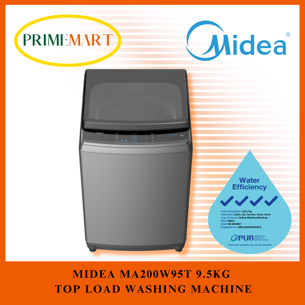 [Climate Voucher Eligible*] MIDEA MA200W95T (4 TICKS) 9.5KG TOP LOAD WASHING MACHINE - 2 YEARS WARRANTY