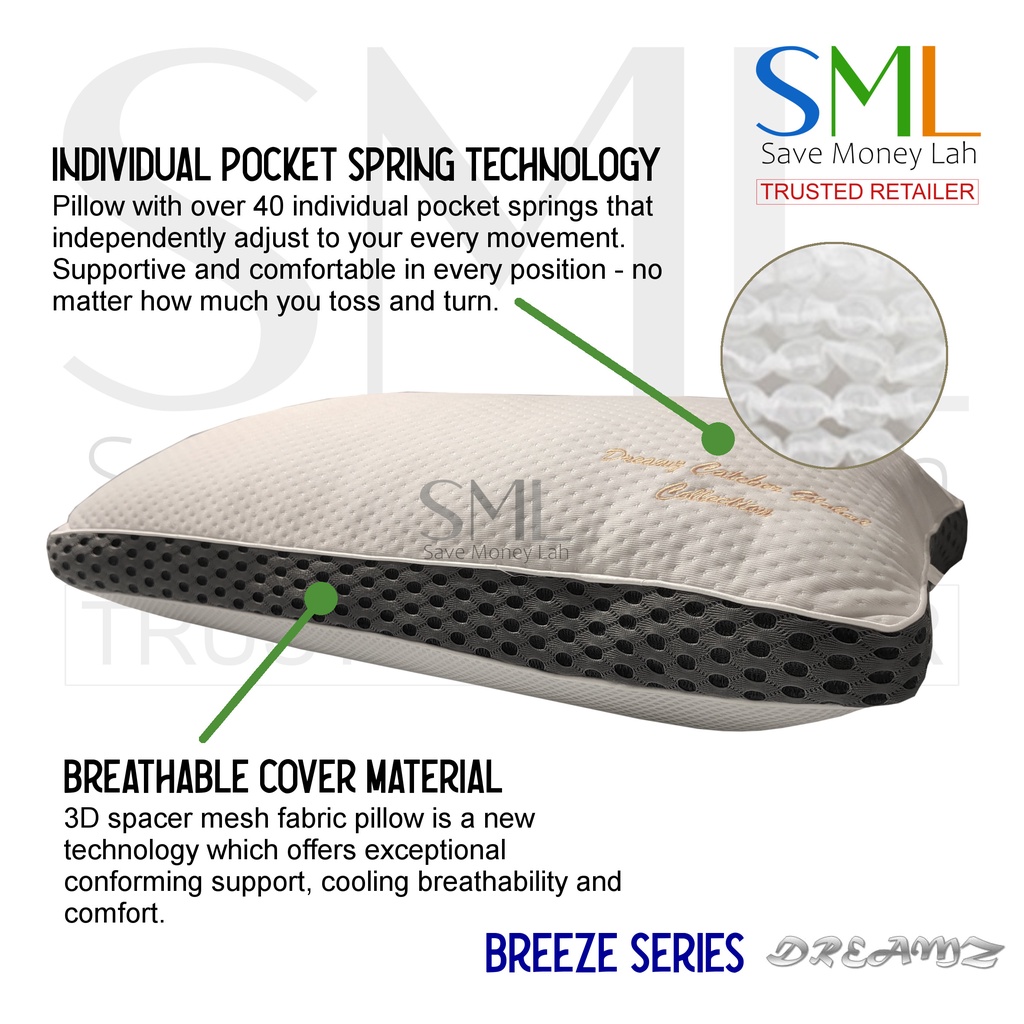 *NEW* *PROMO* Cooling Pocket Spring Pillow / 2pcs Pillows - Medium Firmness - Dreamz Breeze Series