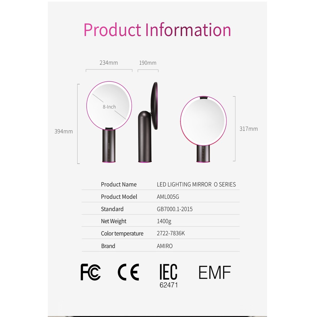 *NEW* 1400 Lux AMIRO 8 Inch LED Lighted Makeup Mirror w/ Recharge Battery, On/Off Smart Sensor