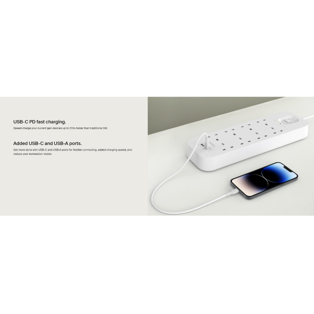 *NEW Model* BELKIN 8 outlet Surge Protector with USB-C and USB-A Ports (8 Outlet with 1 USB-C & 1 USB-A) / SRB003af2M-MY