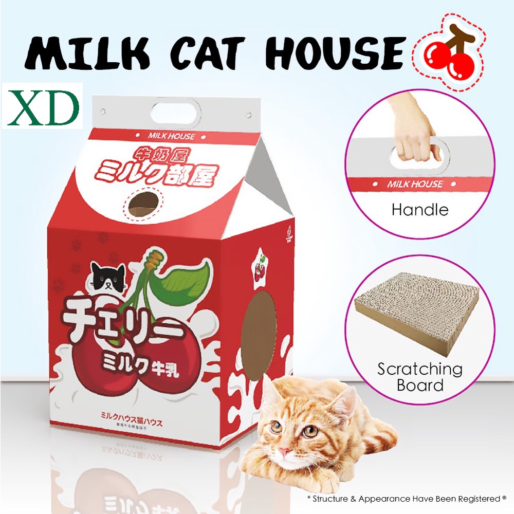 *SG* CHERRY MILK BOX CAT HOUSE WITH SCRATCHING BOARD