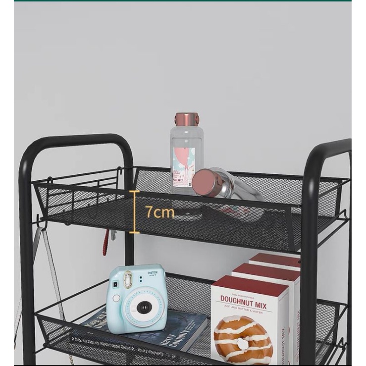 *SG In-stock* Kitchen Pushing Cart Basket Tray Trolley 4 Tier Storage Cart Multifunction Black White