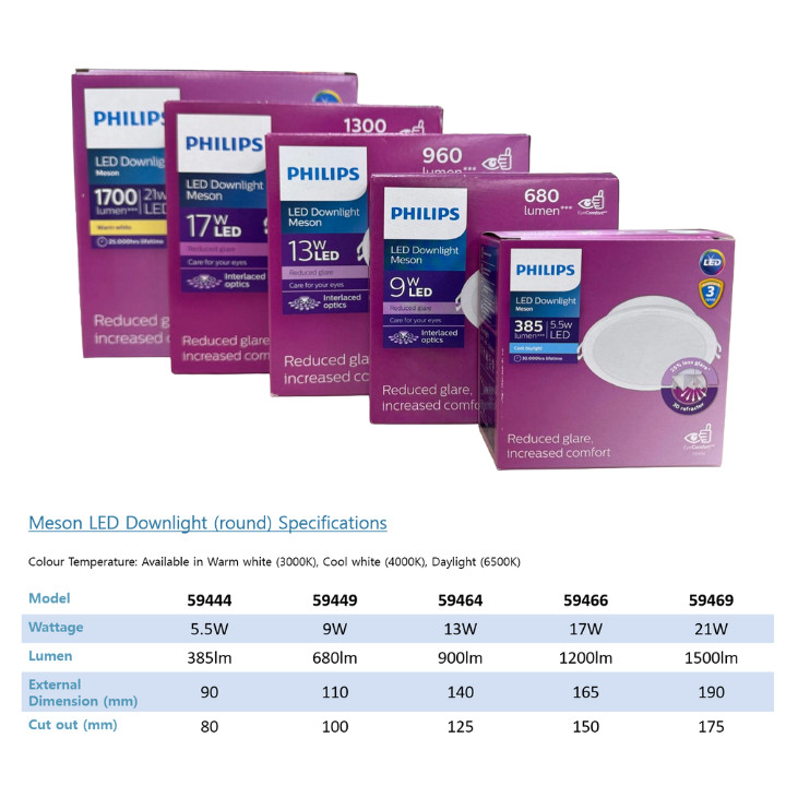 *WHOLESALE PROMO* Philips Meson LED ROUND Downlight 6w/9w/13w/17w/21w in DL/WW/CW | Authentic from Singapore