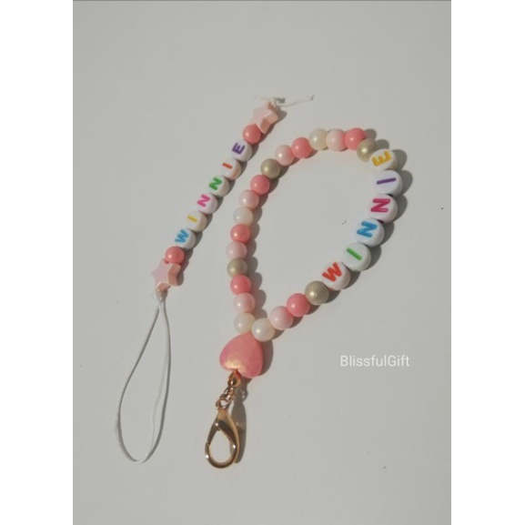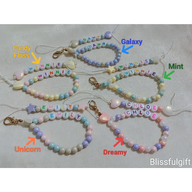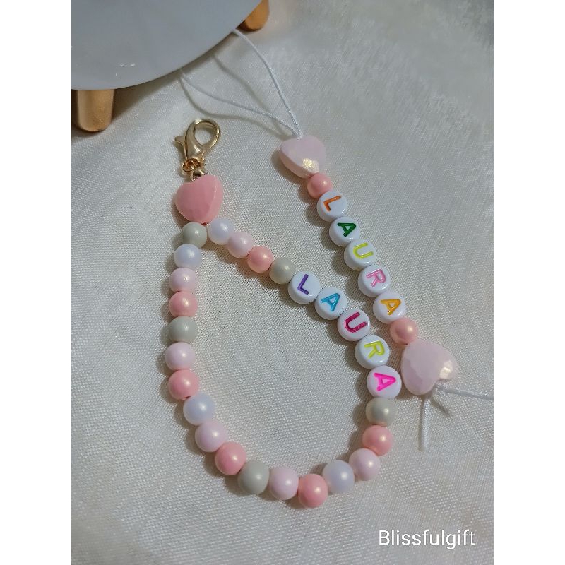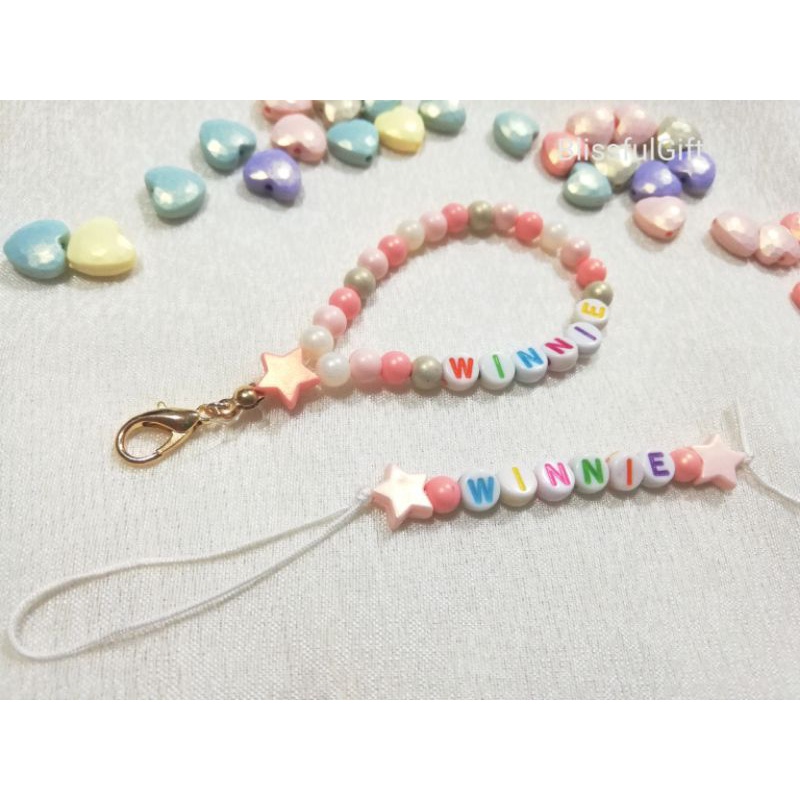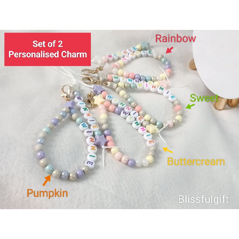 [🇸🇬SG][Set of 2] Personalised Unique Beaded Name Bag Charm Keychain Mobile Strap Customised Cute Birthday Christmas Gift