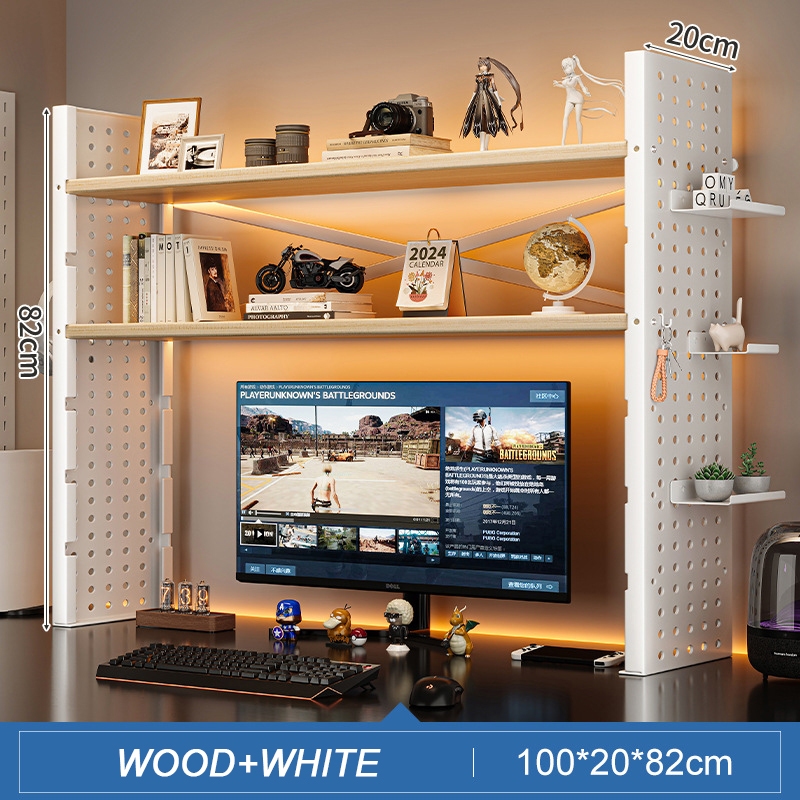 [1-2 Day Delivery]Computer Monitor Stand Wooden Laptop Stand Computer Monitor Riser Computer Rack Keyboard Storage Ergonomic Metal Monitor Riser Stand with Mesh Platform