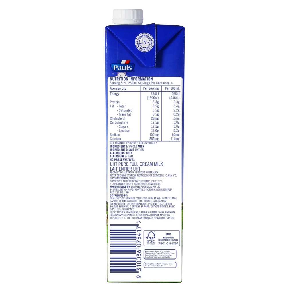 [1 Carton] Pauls 100% Australian Milk Pure Full Cream (12x1L)