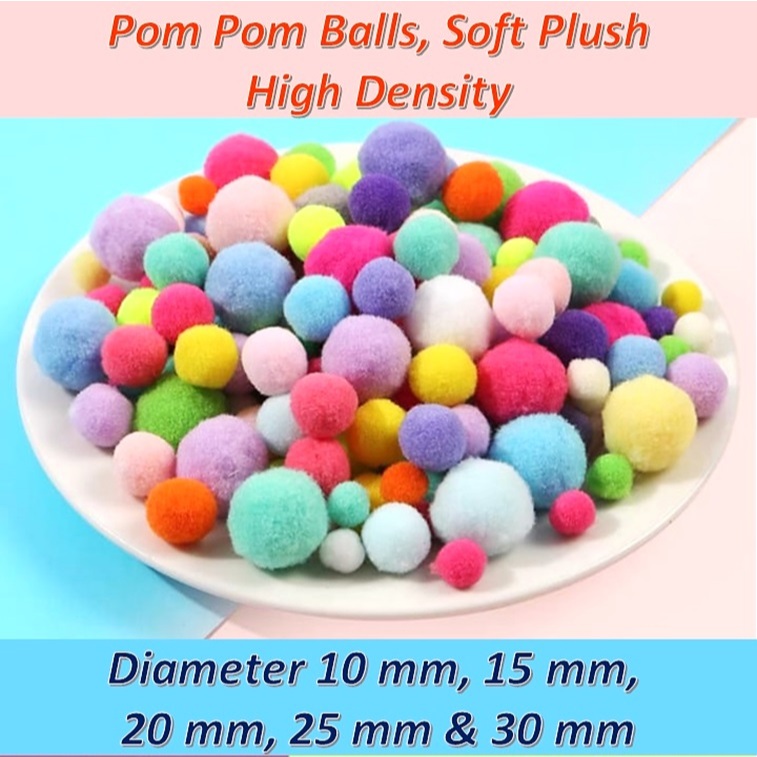 [1 Pack] [AC 06A] Pom Pom Balls | Round Cotton Soft Plush Fluffy Pom-Pom | 3 Sizes Craft Pompom | Assorted Plain Colors