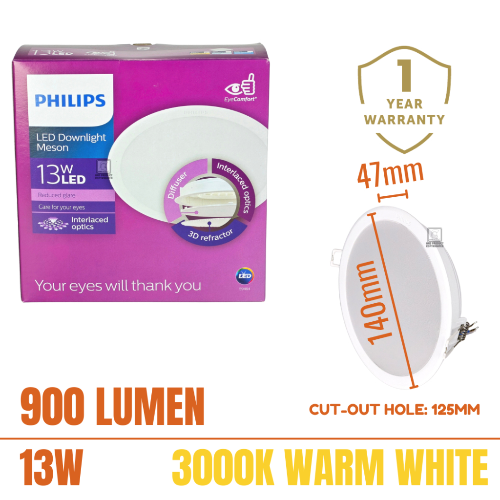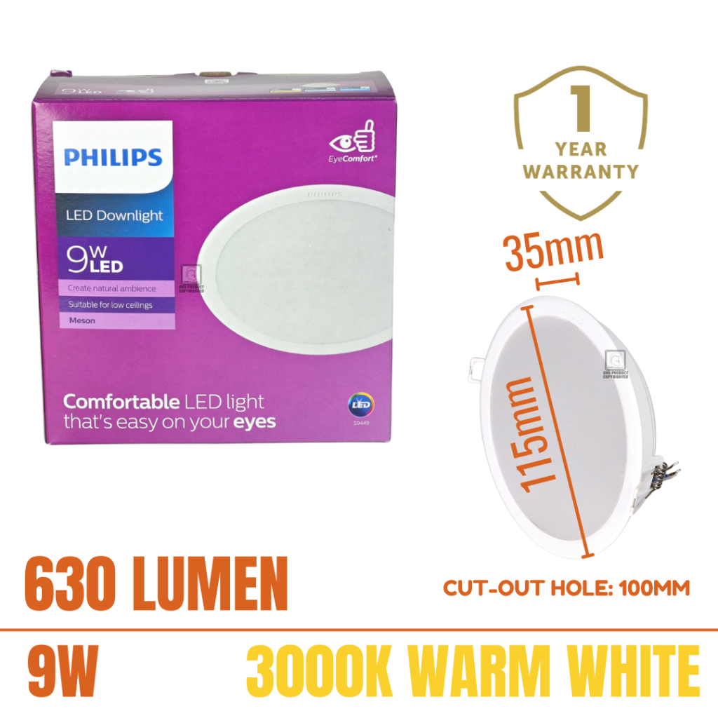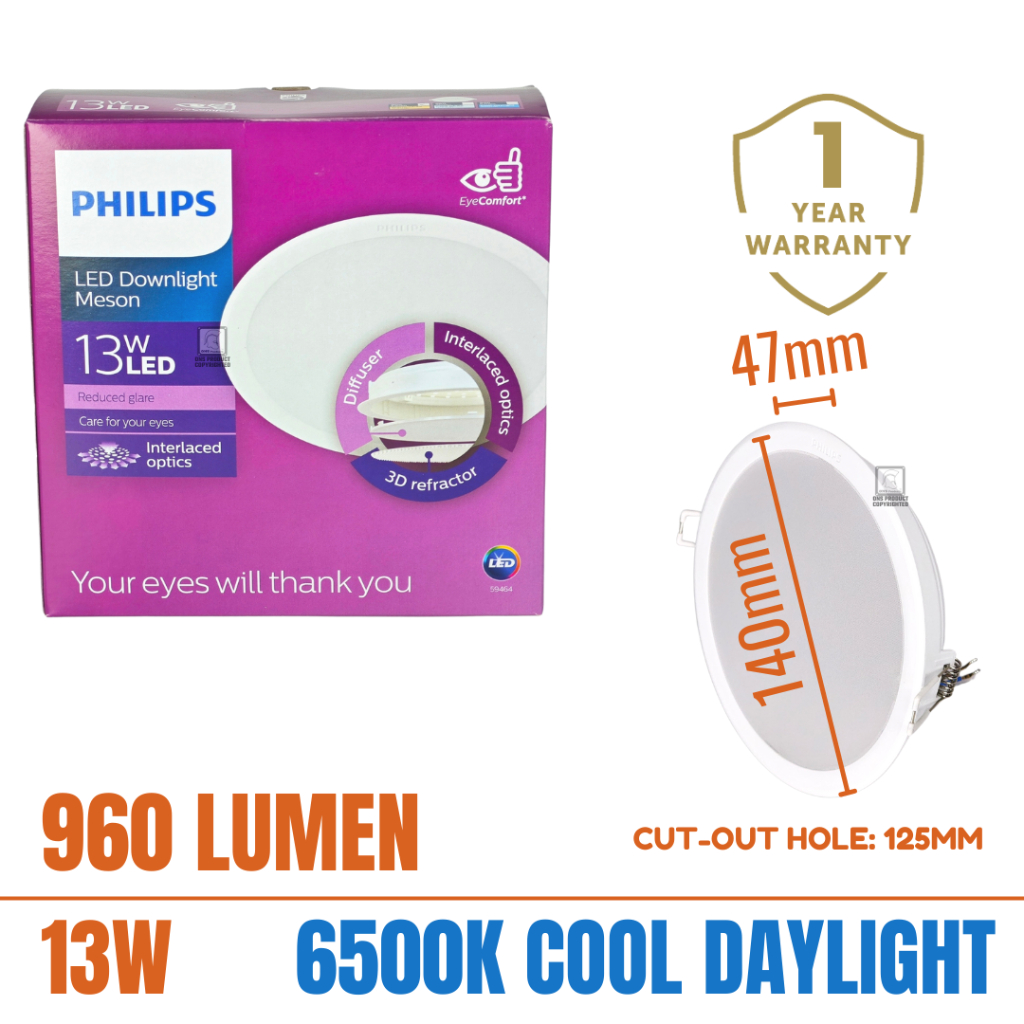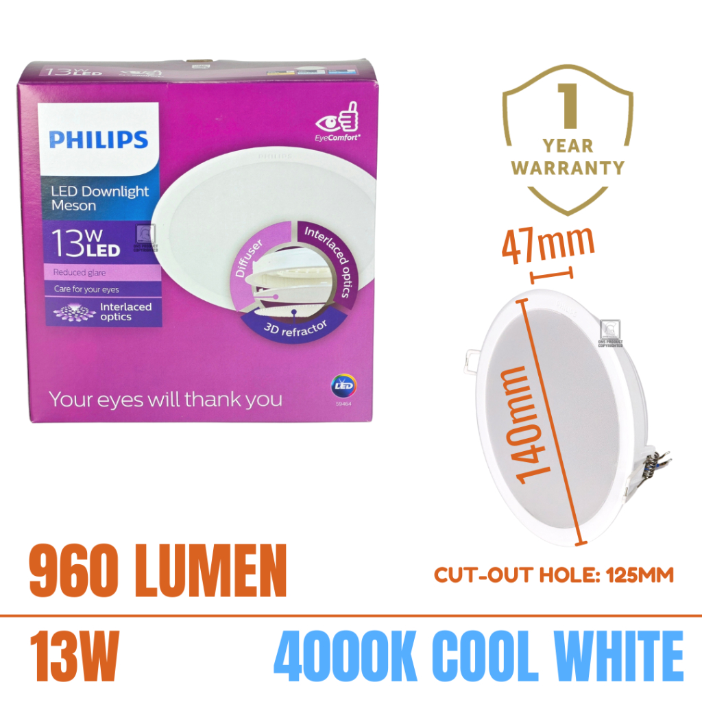 [1 Year Warranty] Philips Meson LED Downlight Philips Down light 9W/13W Round/Square