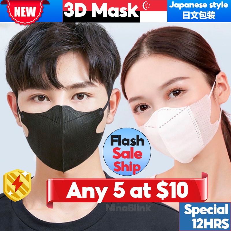 [10PCS] 3D Duckbill Mask Japan&Korea Design 3Ply Disposable Fashion Breathable Adult Black&White Face Mask