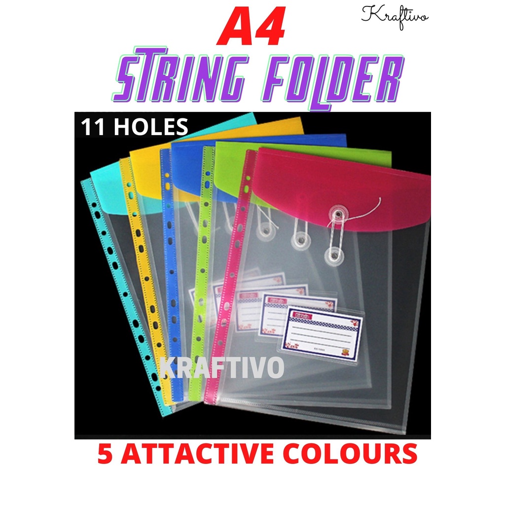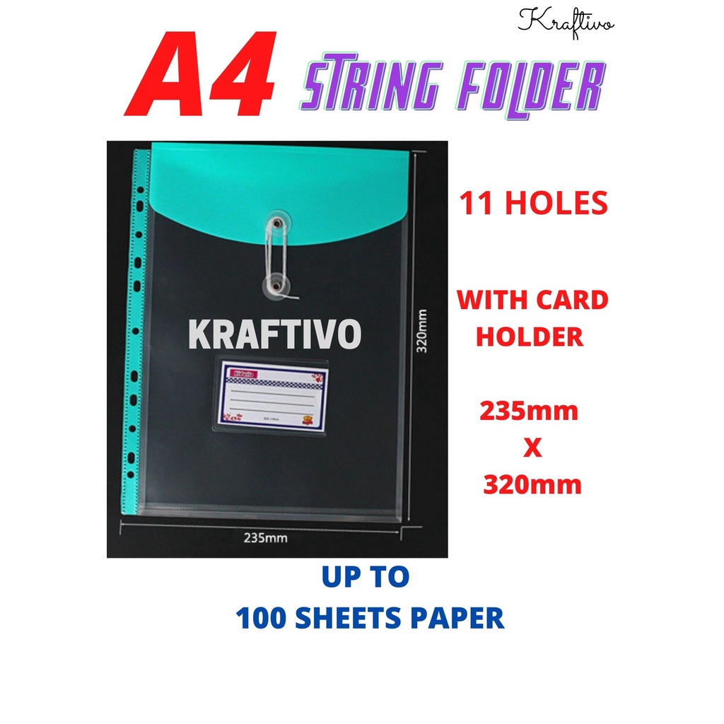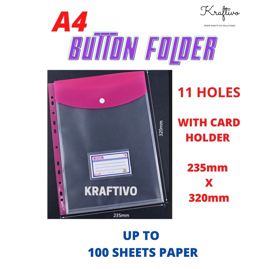 [ 11 HOLES ] KIDARIO A4 11 HOLES BUTTON FOLDER / STRING FOLDER WITH NAME CARD SLOT / FIT TO 2D , 3D & 4D FILE