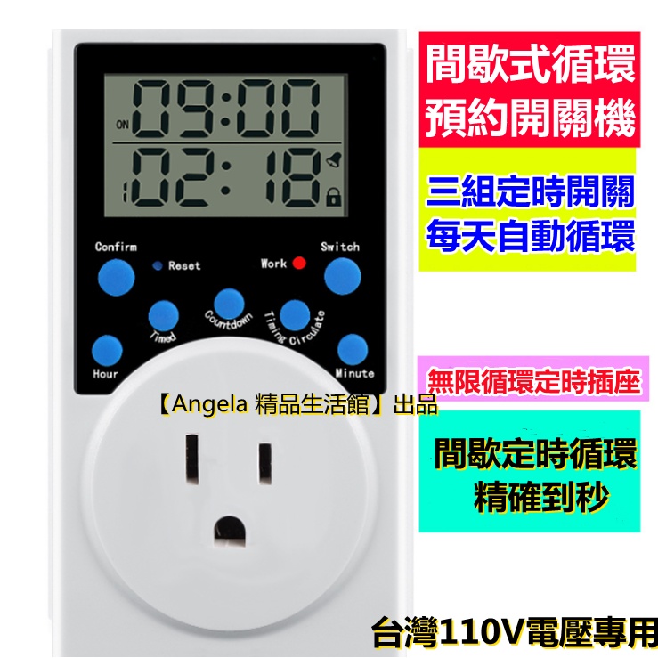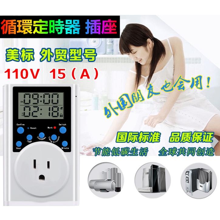 [110V Socket Timer] Timer Switch Socket Cycle Timer Timer Switch Electronic Digital Timer Socket Accurate Second Intermittent Switch 110V 15A