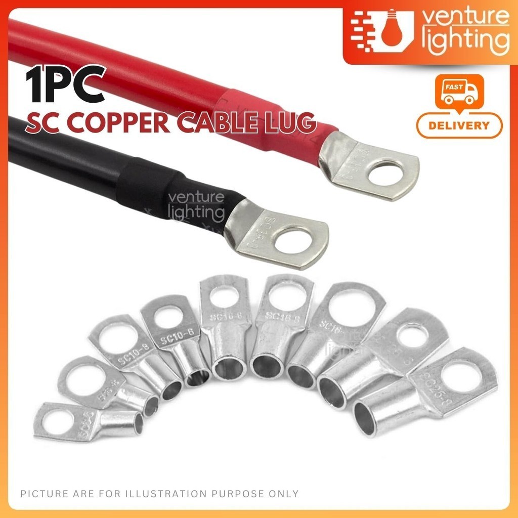 [1PC] CABLE LUG SC Copper Conduct Terminal Ring Tin Copper Plate Battery Wire Cable Lug 50mm 70mm 95mm 120mm 150mm 185mm