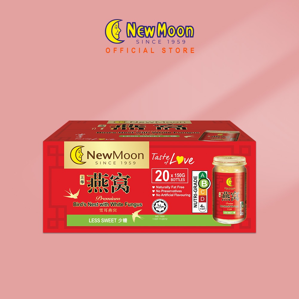 [2 Cartons Deal - Less Sweet] New Moon Bird's Nest with WHITE FUNGUS Rock Sugar 150g x 20 bottles