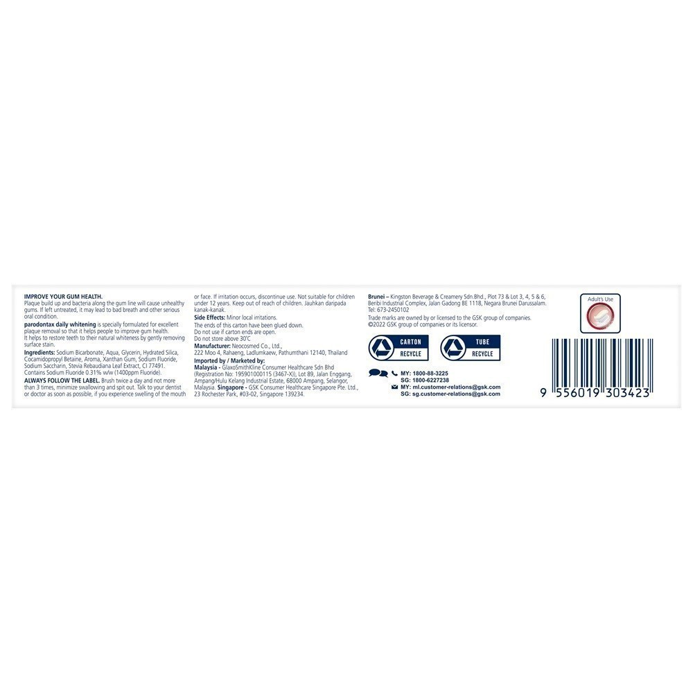 [2 Pack] PARODONTAX Toothpaste, Helps Restore Teeth Natural Whiteness, Whitening - 90g