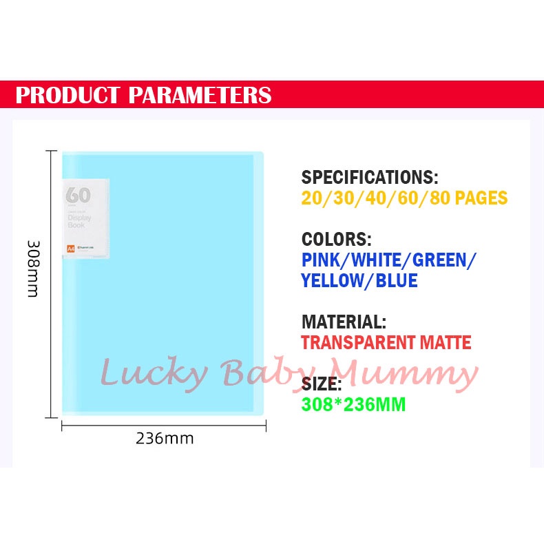 [20/30/40/60 pockets] A4 Clear Display Book Pocket Plastic File Folder/ Paper Organizers/Rainbow Culture