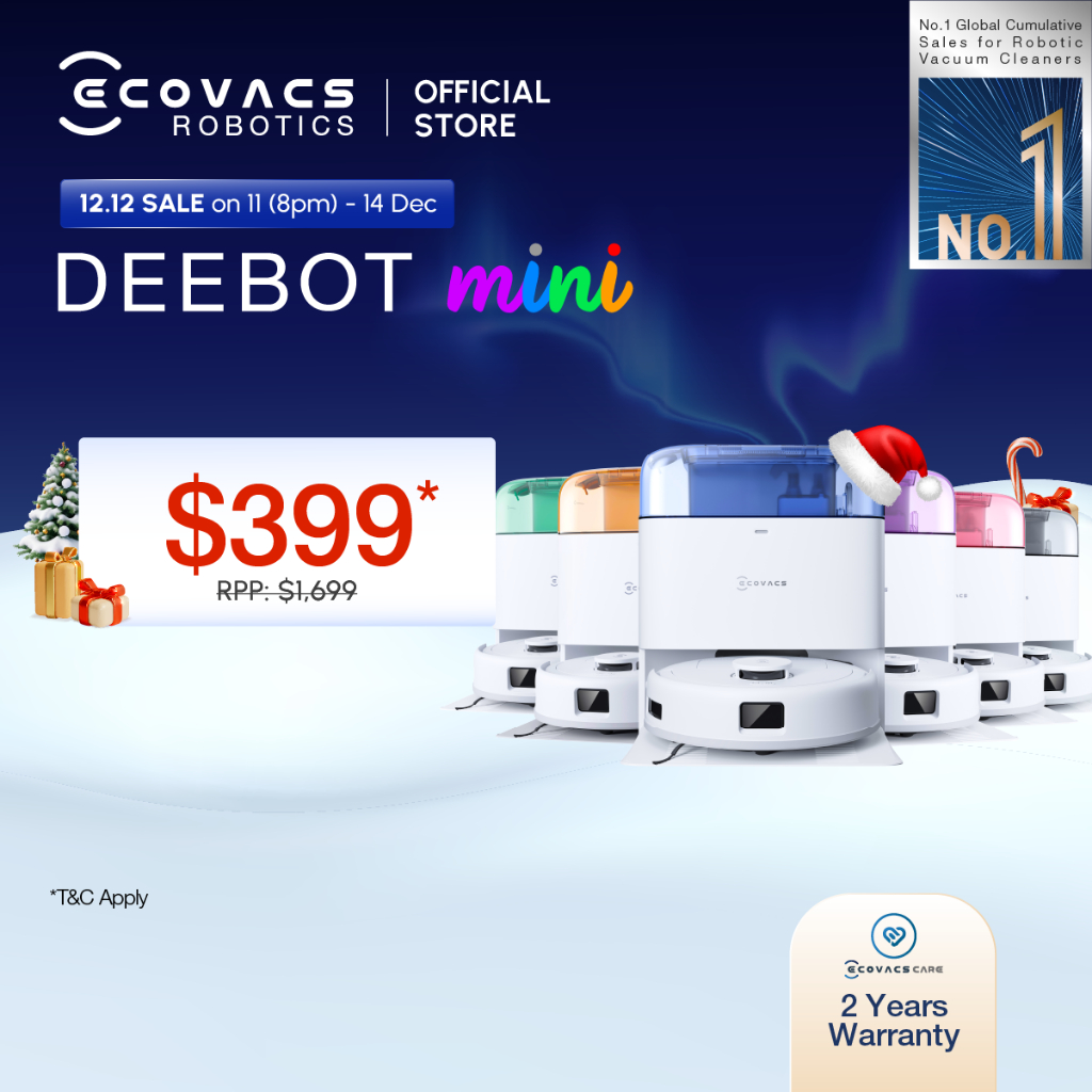 [BEST BUY] ECOVACS DEEBOT MINI ROBOT VACUUM CLEANER | 9000 PA | 45C HOT AIR DRY| ZEROTANGLE™2.0 | AUTO WASH | SELF-EMPTY