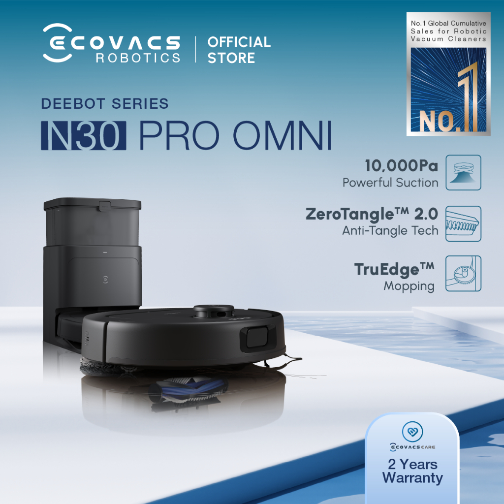 [BEST SALE] ECOVACS DEEBOT N30 PRO OMNI ROBOT VACUUM | 10,000 PA | ZEROTANGLE™ 2.0 | 60°C HOT WATER WASH & HOT AIR DRY