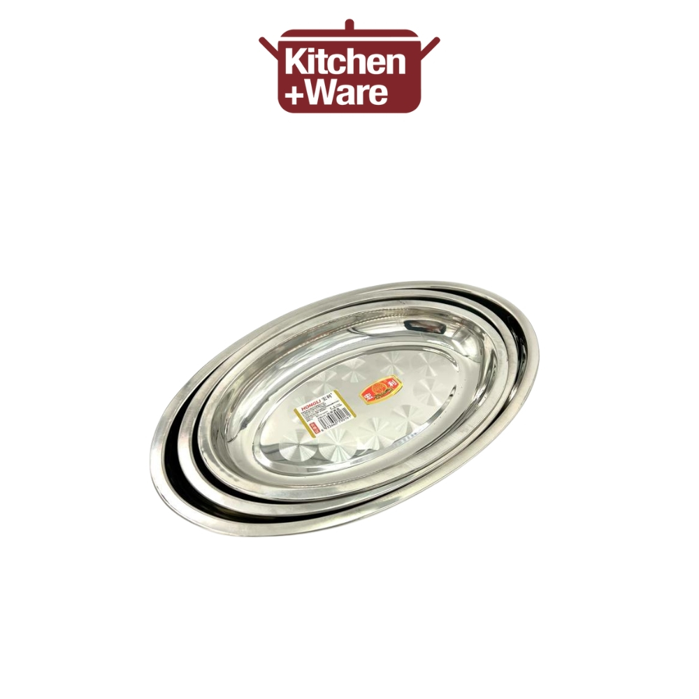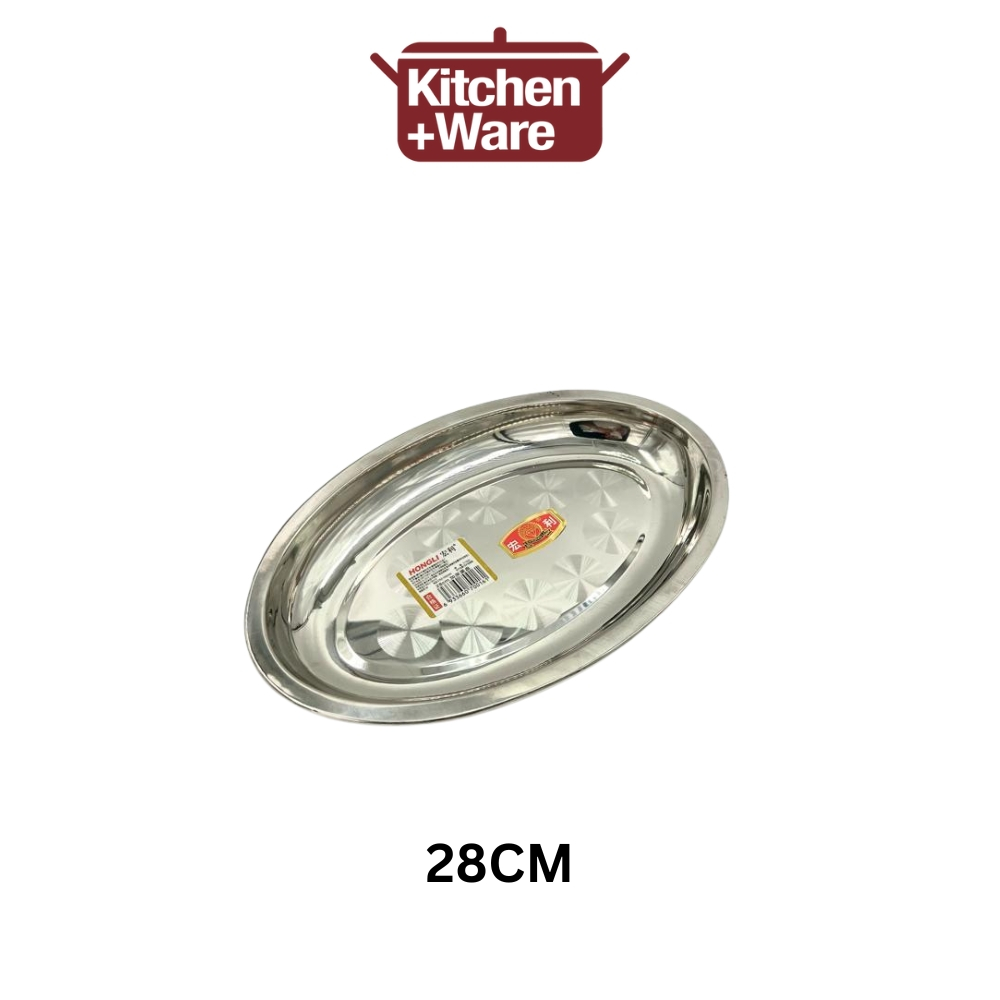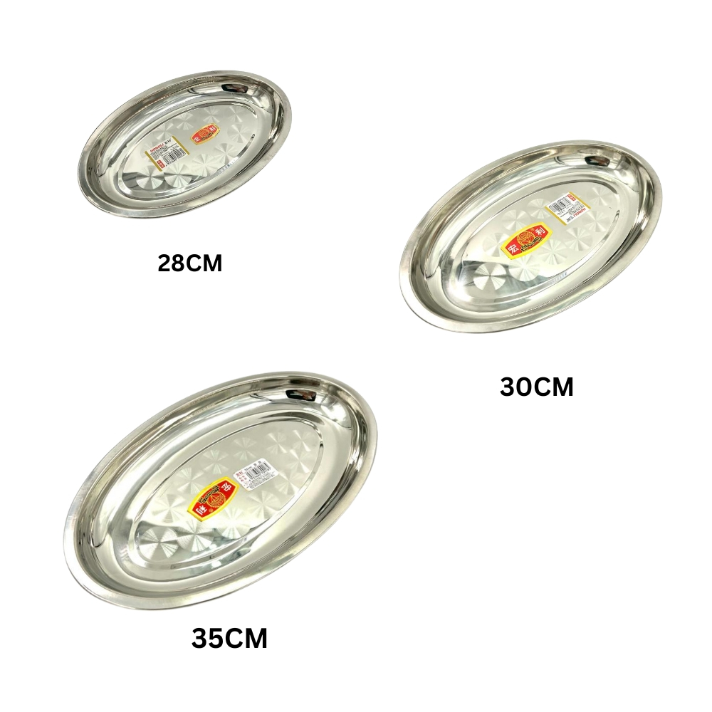 [28/ 30/ 35 CM] Food Grade Stainless Steel Oval Deep Plate/ Dinner Plates for Kids And Adult/ Reusable and Dishwashable