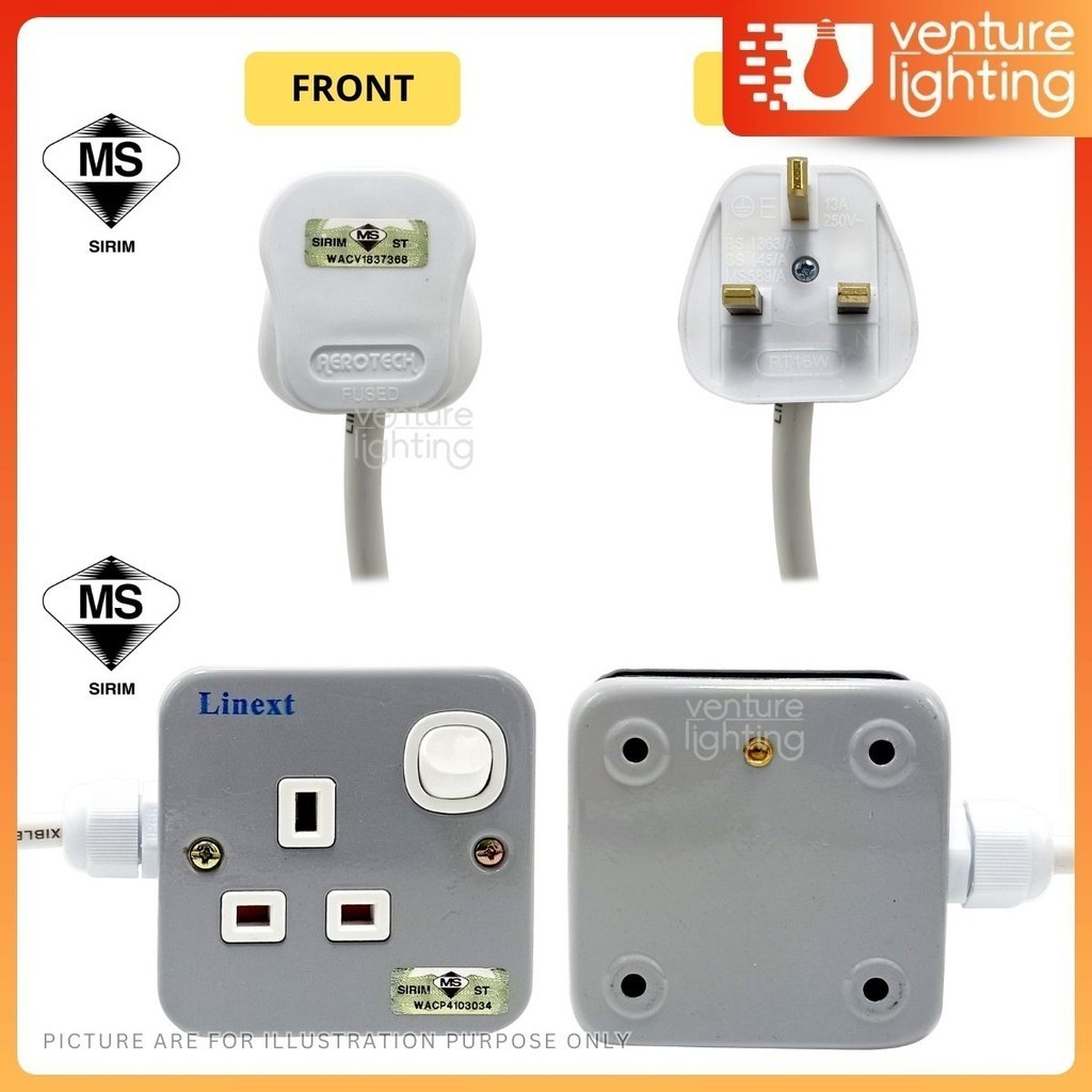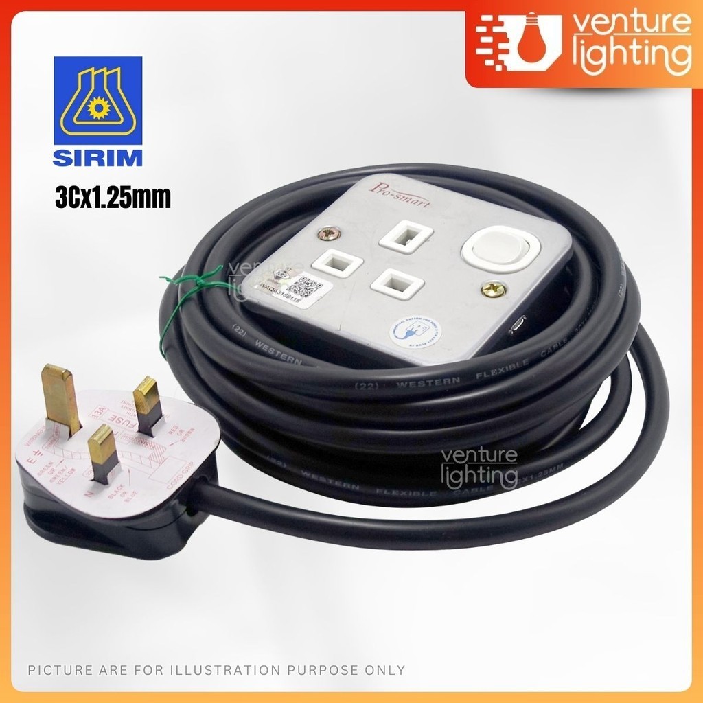 [3M/ 5M /10M] 1WAY x 13amp Metal Clad Heavy Duty Portable Socket Extension Trailing Socket Metal Socket Extension Plug