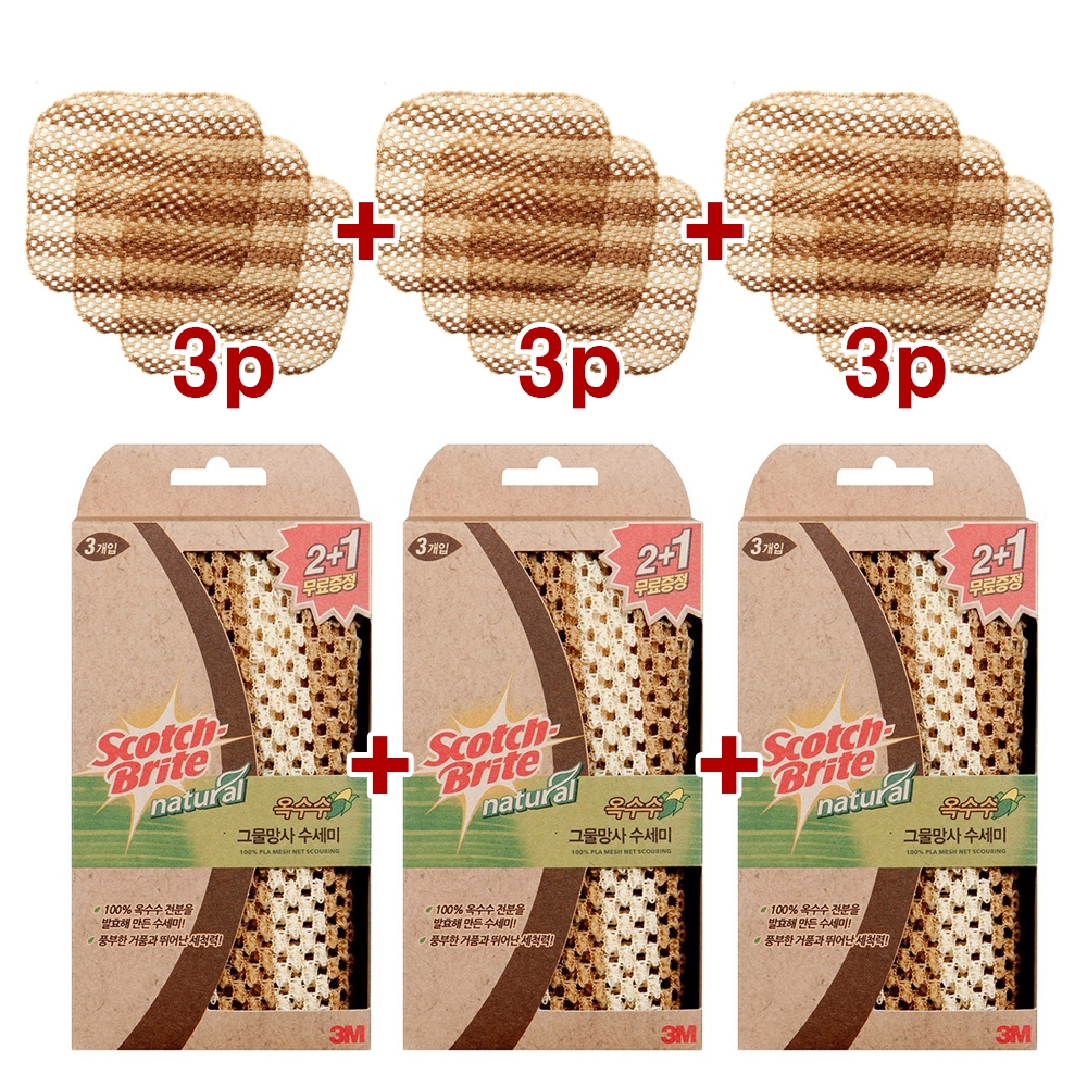 [3M] Scotch-Brite Corn Mesh Scrubber 2+1 / Biodegradable Eco-Friendly Scrubbers | Kitchen Cleaning Supplies