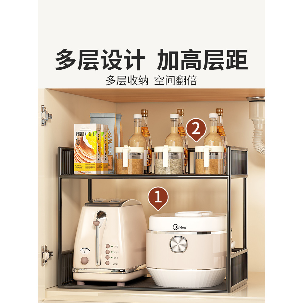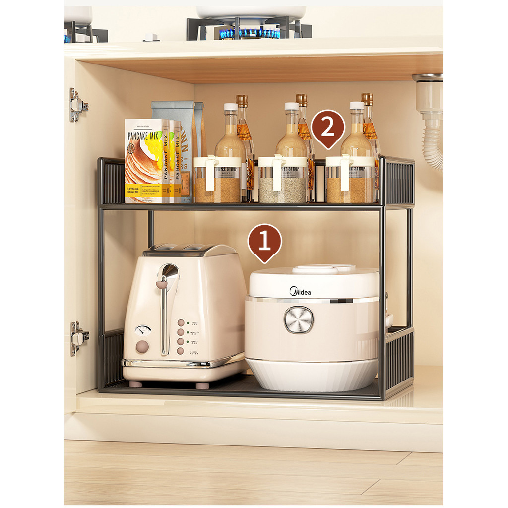 [48H Shipping] Kitchen Under Sink Storage Rack Cabinet Inner Layered Rack Sink Multi-layer Multi-functional Pot and Spice Organizer Shelf