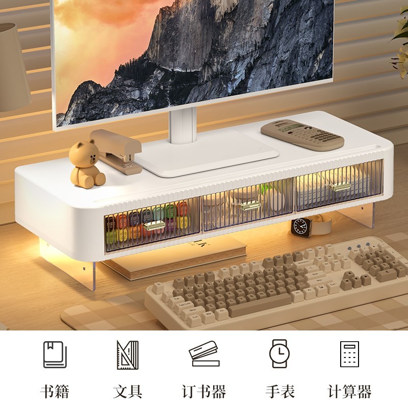 [48H Shipping] Selected Computer Monitor Riser Desktop u Drawer Laptop Stand Office Desk Organizer Storage.