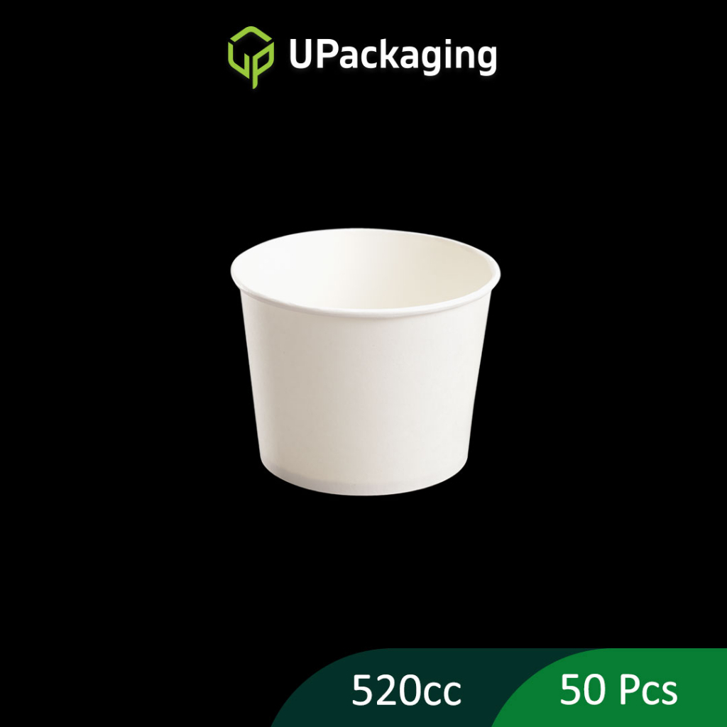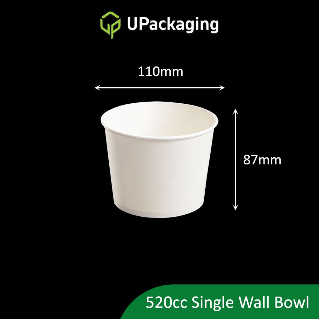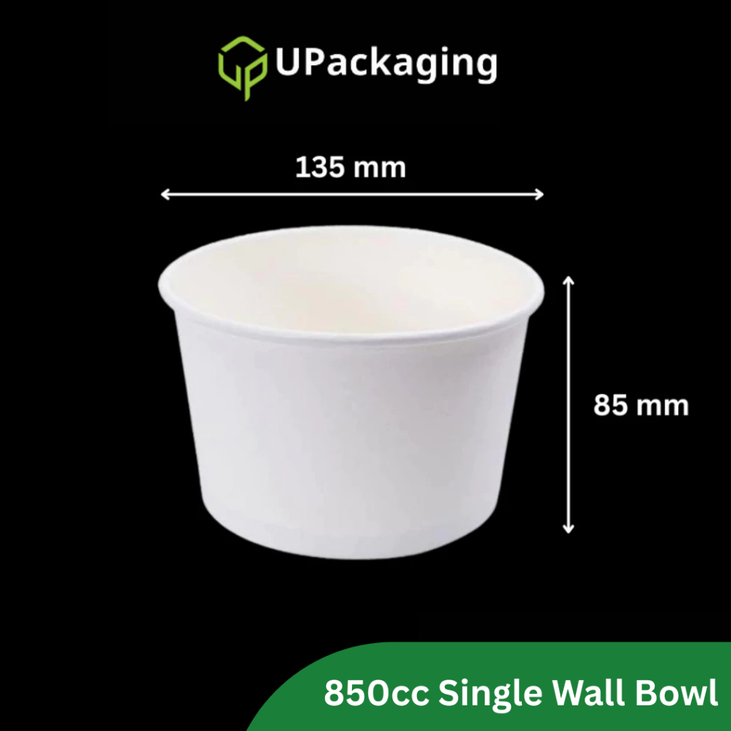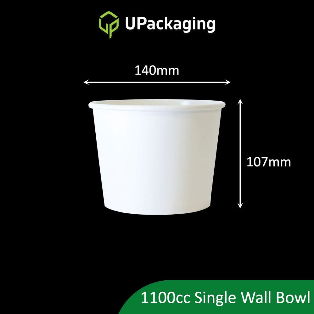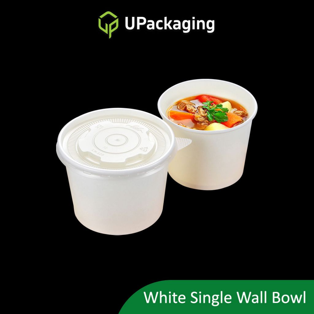 [50 Pcs] WHITE PAPER BOWLS Single Wall Inner Bowl Double Layers with Lids Soup Noodle 390cc 520cc 900cc 1100cc
