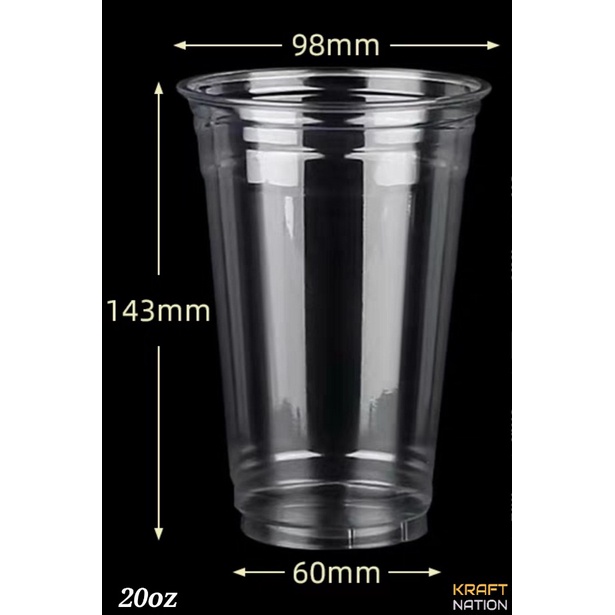 [50 pcs] Premium PET Cup 11/14/16/18/20/24oz Clear Plastic Cup Milk Tea/Cold Cup/Takeaway Cup (Flat/Dome/Strawless Lid)