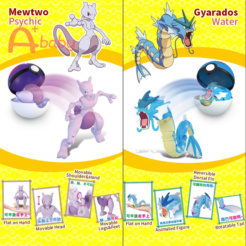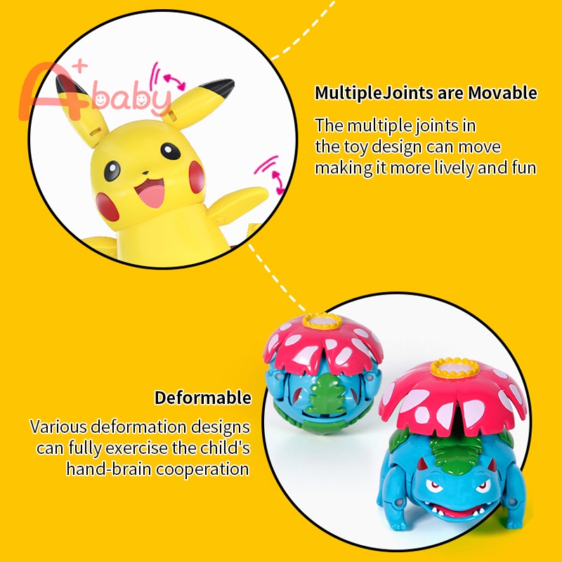 [A+baby] Pokemon Toys Set Action Figures Pikachu/Charizard/Mewtwo/Eevee Kids Transformation Toy Birthday Gift