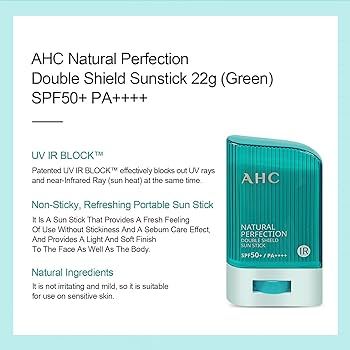 [AHC] Natural Perfection Double Shield Sun Stick 14g/22g - Broad Spectrum SPF50+ PA++++, Waterproof Sunscreen for Face and Body, Lightweight and Non-Greasy