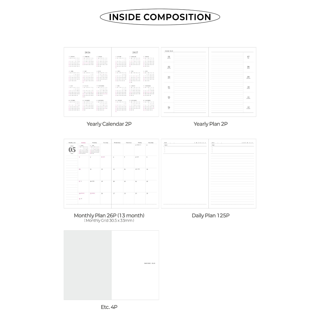 [Ardium] 2026 Day by Day Diary with Cute Animal Illustrations - 13 Months Date Type Planner