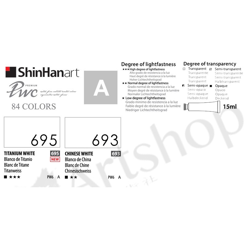 [Artshop Art Supplies] Korea SHINHAN PWC Expert Transparent Watercolor Paint 15ml (Grade A) Monochrome