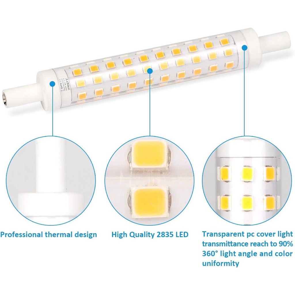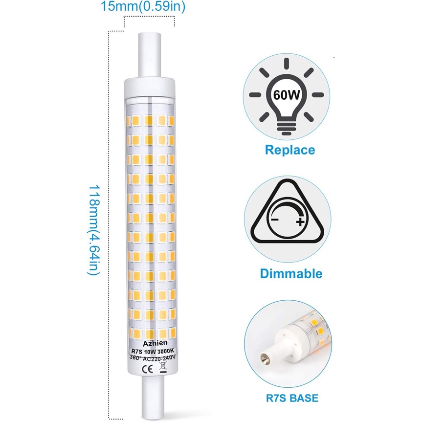 "Azhien R7S LED Dimmable 118mm, R7S LED 118mm 10W Warm White 3000K R7S Socket J118 Bulb,15mm X 118mm,230V AC,1000LM,360