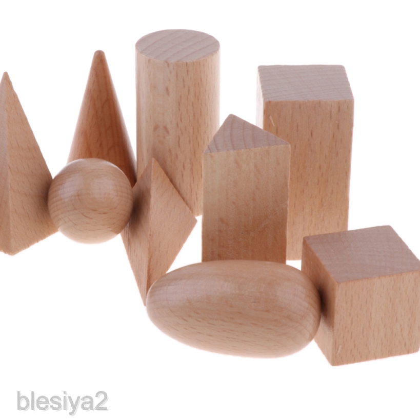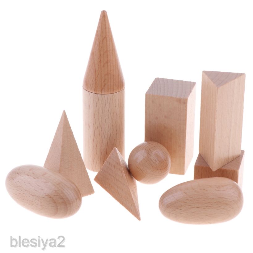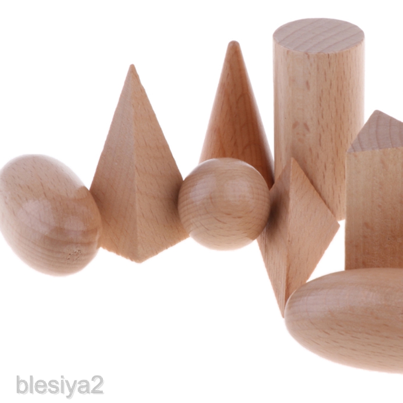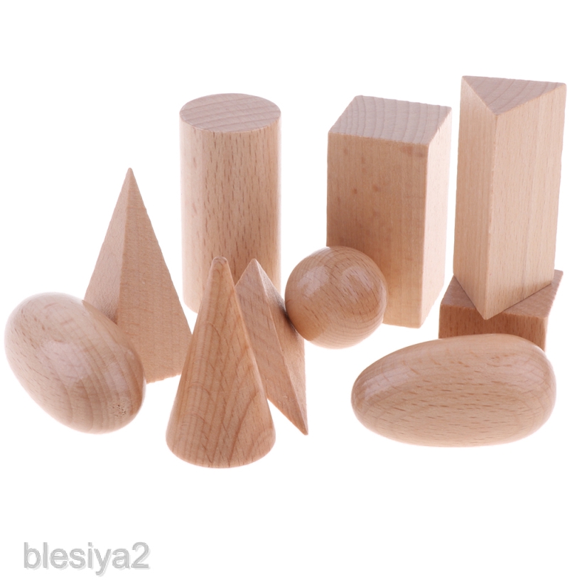 [BLESIYA2] Polished Wooden Geometric Solids Blocks, 3D Shapes (Set of 10)