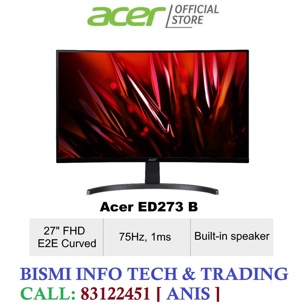 [BRAND NEW]Acer ED273 B 27" FHD E2E Curved (VA) Gaming Monitor with 1ms response time Build in Speaker 3 Years Warranty