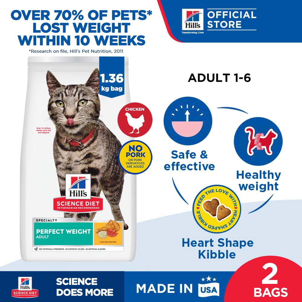 [Bundle Of 2] Hill's Science Diet Adult Perfect Weight Chicken Recipe Dry Cat Food 1.36kg