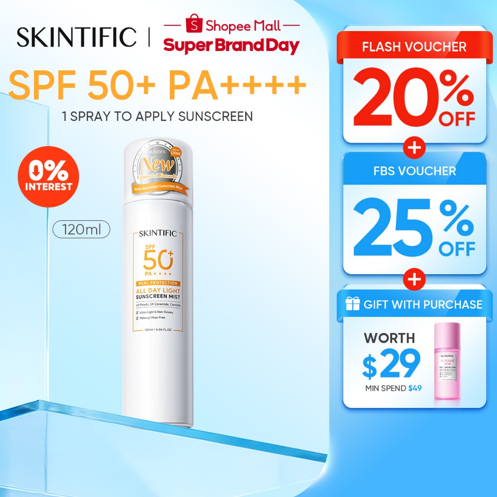 [Best Seller] SKINTIFIC All Day Light Sunscreen Mist SPF50 PA++++ -Facial Sunblock Face Sunscreen Spray Anti UV