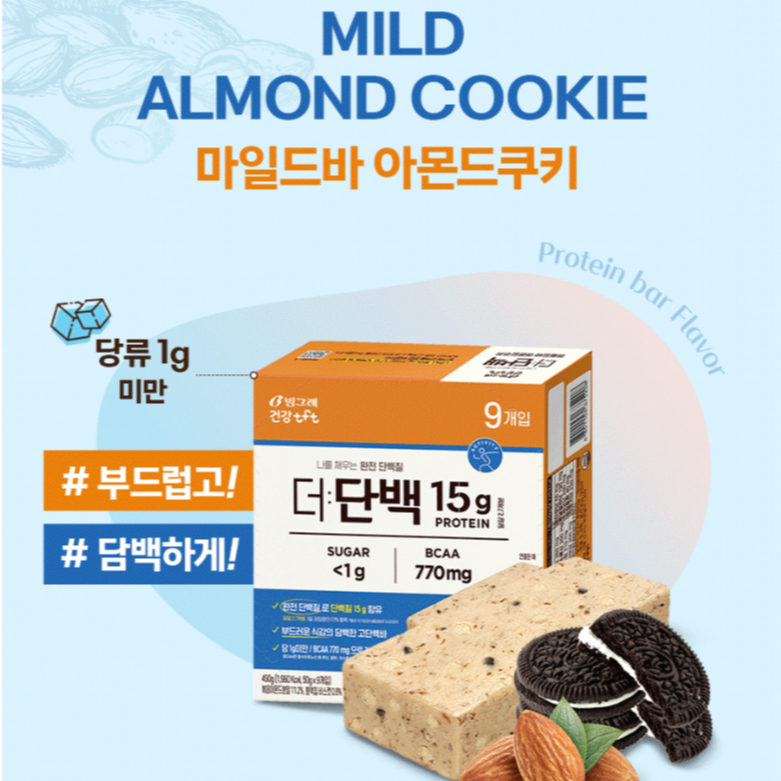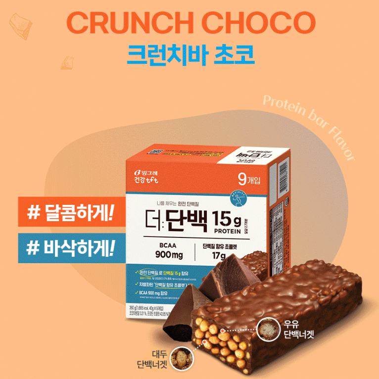 [Binggrae] The Danbaek Protein Bar 9-Pack | Crunch Choco / Peanut Butter / Almond Cookie | 15g Protein | Low Sugar | BCAA | KOREAN OFFICIAL