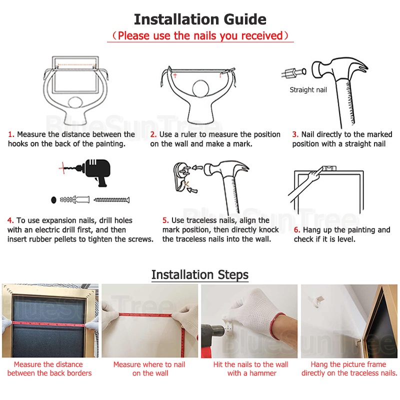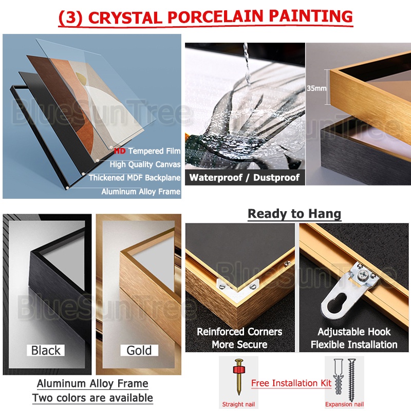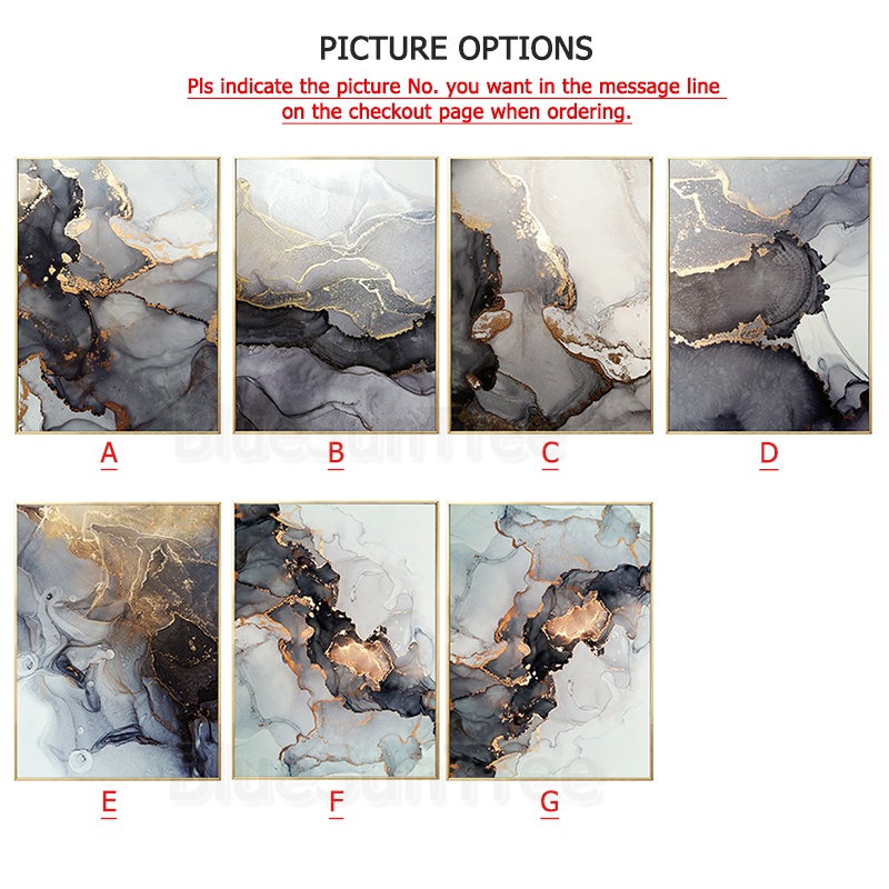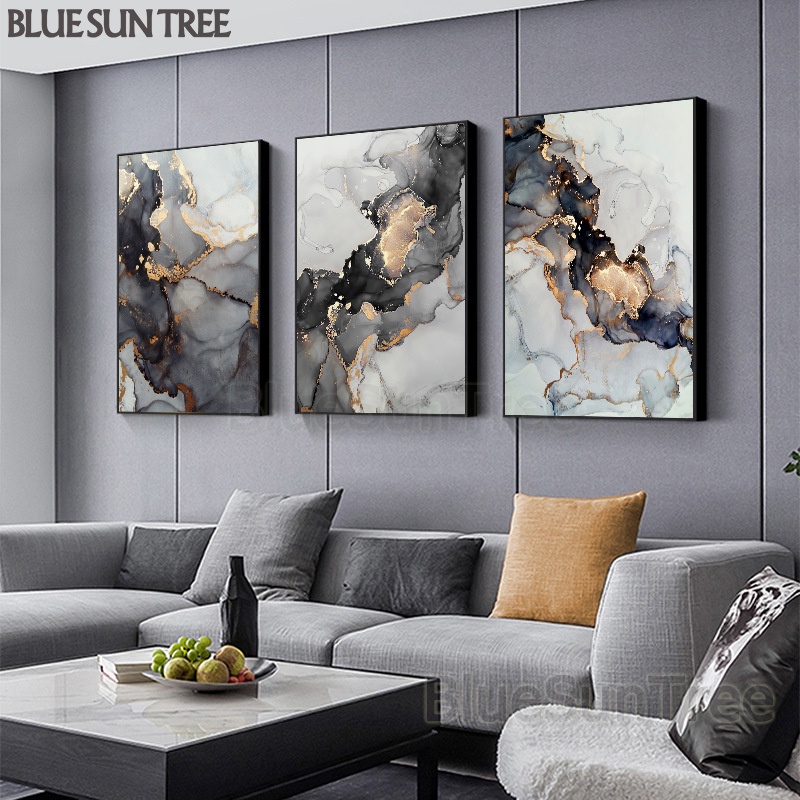 [BlueSunTree] Rectangle Framed Painting -Modern Abstract Ink Gold Foil Decorative Painting -Ready to Hang -Thick Canvas HD Printing -Home Wall Decoration Black Mural Canvas art