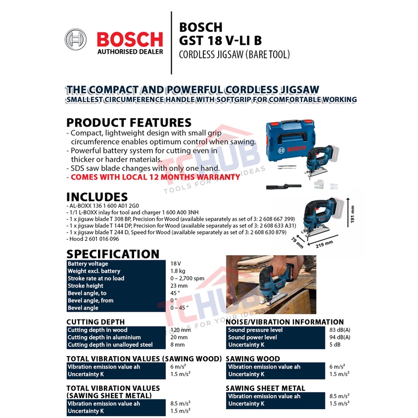 [Bosch] GST 18 V-LI B Cordless Jig Saw (Bare Tool)