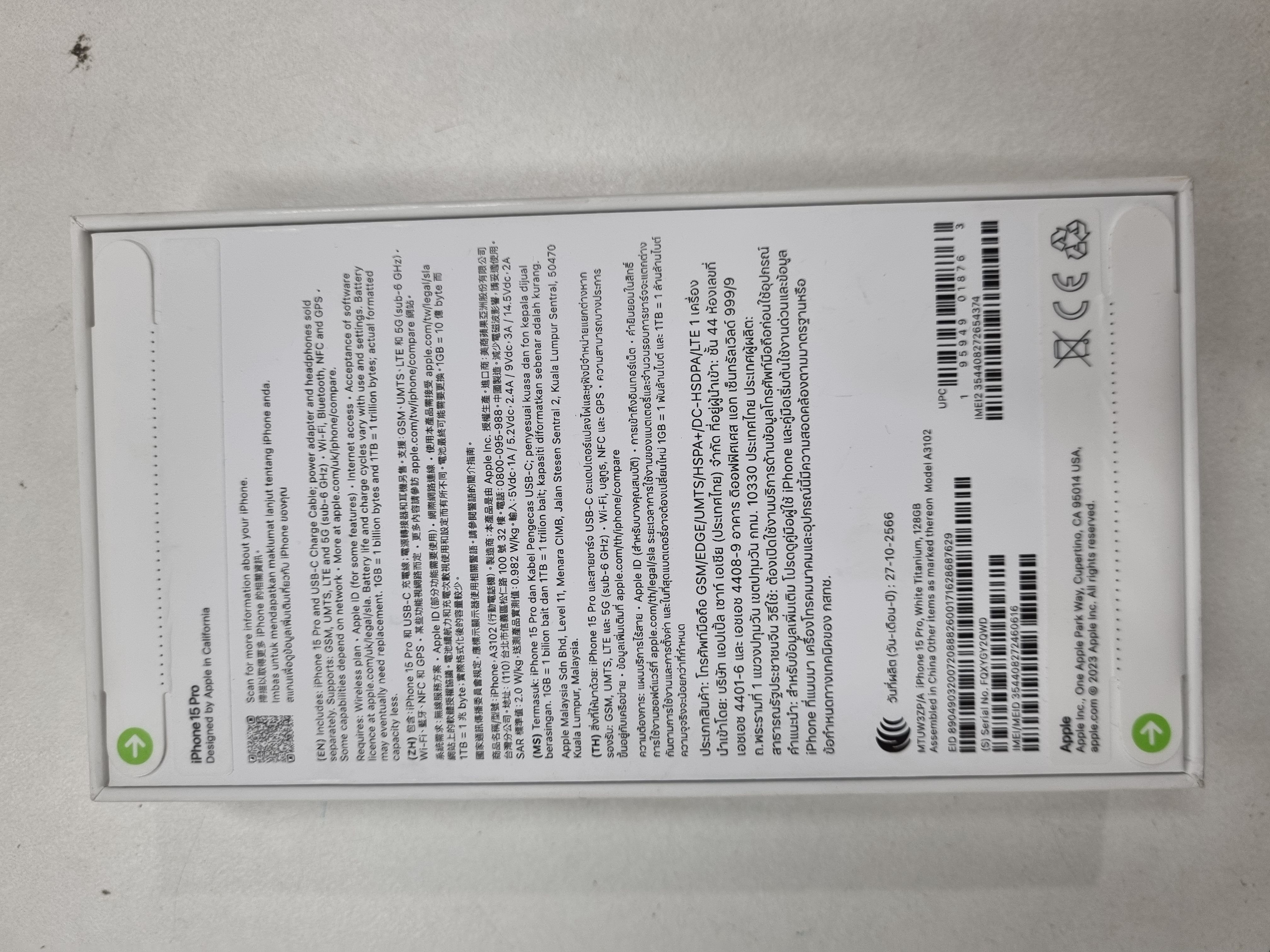[Box Dented] Apple iPhone 15 Pro: White Titanium,128GB