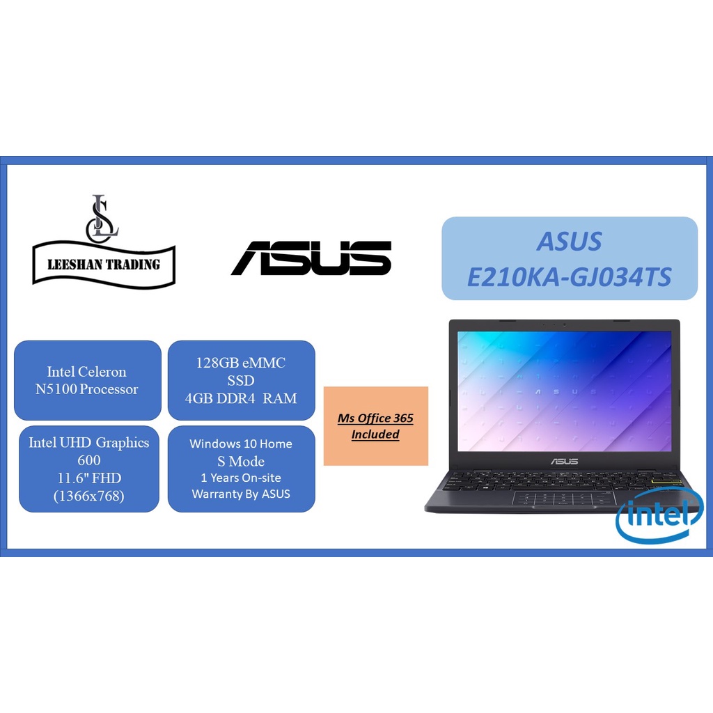 [Brand New] ASUS LAPTOP E210KA | Intel Celeron N5100 | 11.6" | 4GB Ram | Intel UHD GPU | 128GB SSD |Windows Home | 1year